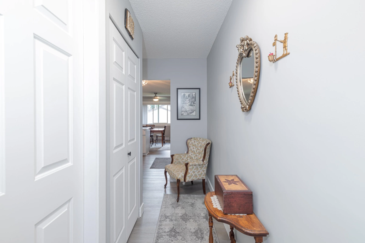 Beautifully updated 2 bedroom condo! From flooring to paint to kitchen this home is fresh and current. Add to that a great layout that maximizes the space and you have a 10/10. The features of this home include a bright white kitchen with a breakfast bar, stainless appliances, separate dining area, spacious living room with gas fireplace and sliders to the solarium, vinyl plank floors, upgraded light fixtures, large glass shower and rectangular vessel sink in the bathroom, separate laundry room with storage and a storage locker on the same floor next to the unit. Located just steps from Sevenoaks and Mill Lake means you can leave the car in the underground parking. Royal Oaks is a 55+ community. Quick possession possible!! A must see!!