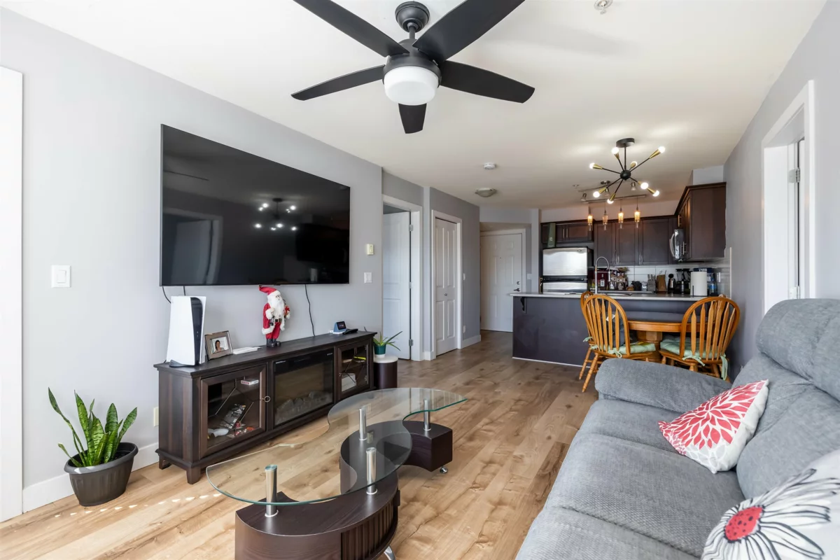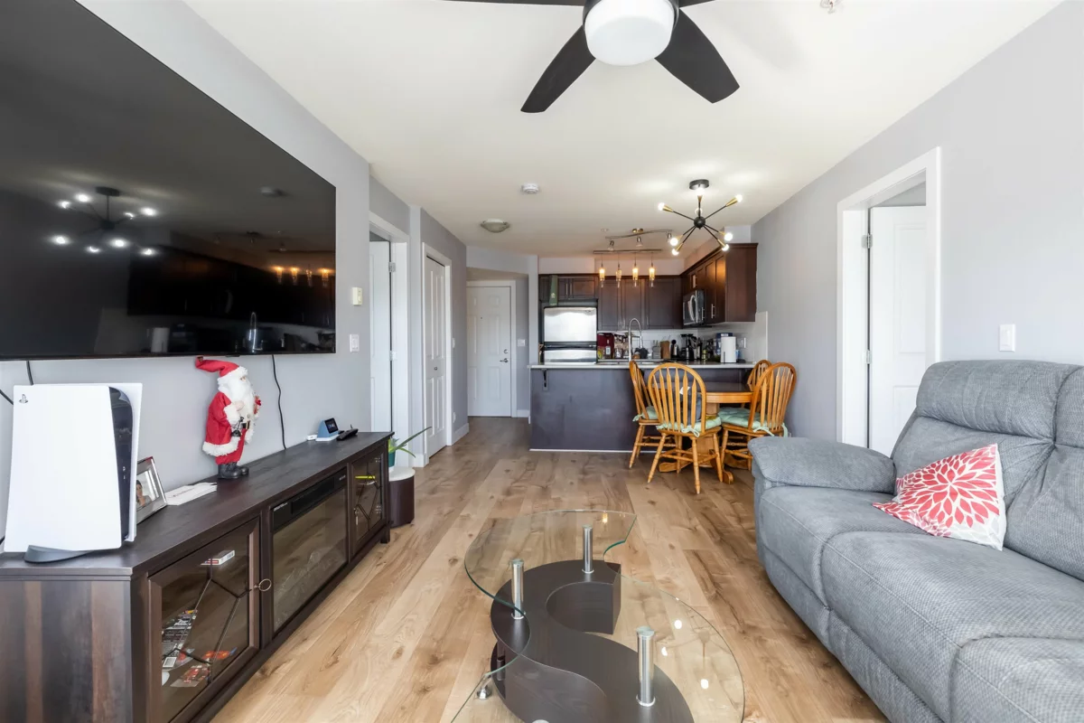 Welcome to NEW MARK! This cozy 1 Bedroom and Den, plus 1 Bathroom condo features new laminate flooring throughout. The large bedroom has a double-sided, walk-through closet which leads to a full 4-piece bathroom. This home has in-suite laundry and also comes with one underground parking space. It’s conveniently located (just a 5-minute walk) to District 1881 in downtown Chilliwack, where you will find locally owned restaurants, breweries, coffee shops and retail shops. Plus, one pet is allowed (one dog or cat - dogs limited to 12" from ground to shoulder). Whether you’re looking for a great investment, retirement or starter home, this condo has you covered!