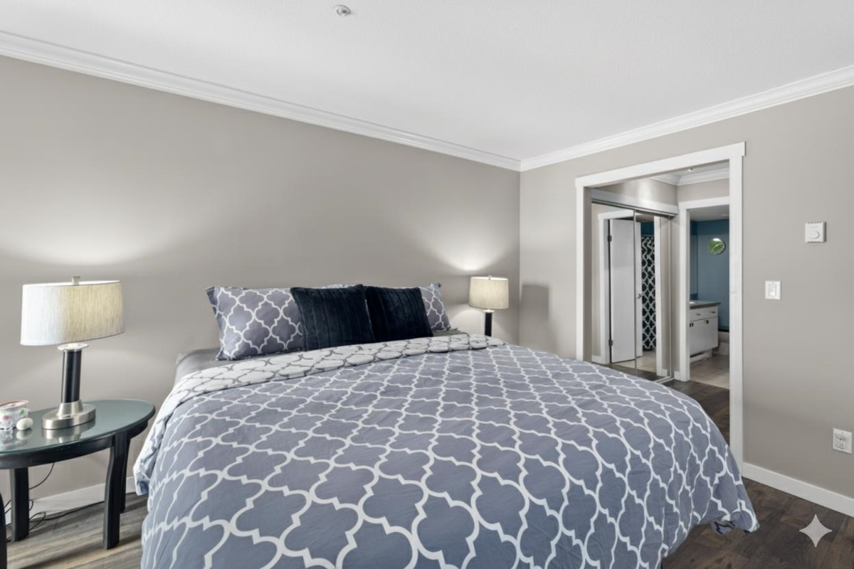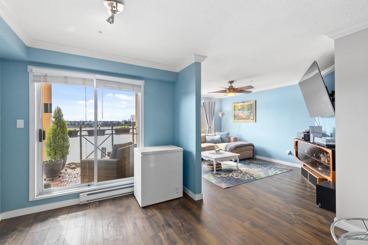 Front-row waterfront living at New Westminster Quay! Set right above the boardwalk, this home offers calming water views from morning to night. The layout feels like a house, so full-sized furniture fits with room to spare, whether you want to entertain or unwind. The kitchen is a real highlight with a large island, great storage and generous counter space that makes cooking easy. Step onto your private balcony for quiet coffee moments or sunsets. The spacious primary fits a king bed, and the second room works as a bedroom or home office. A second secured parking spot is included. This well kept, community minded complex blends peace and convenience just steps from the market, transit and local amenities.