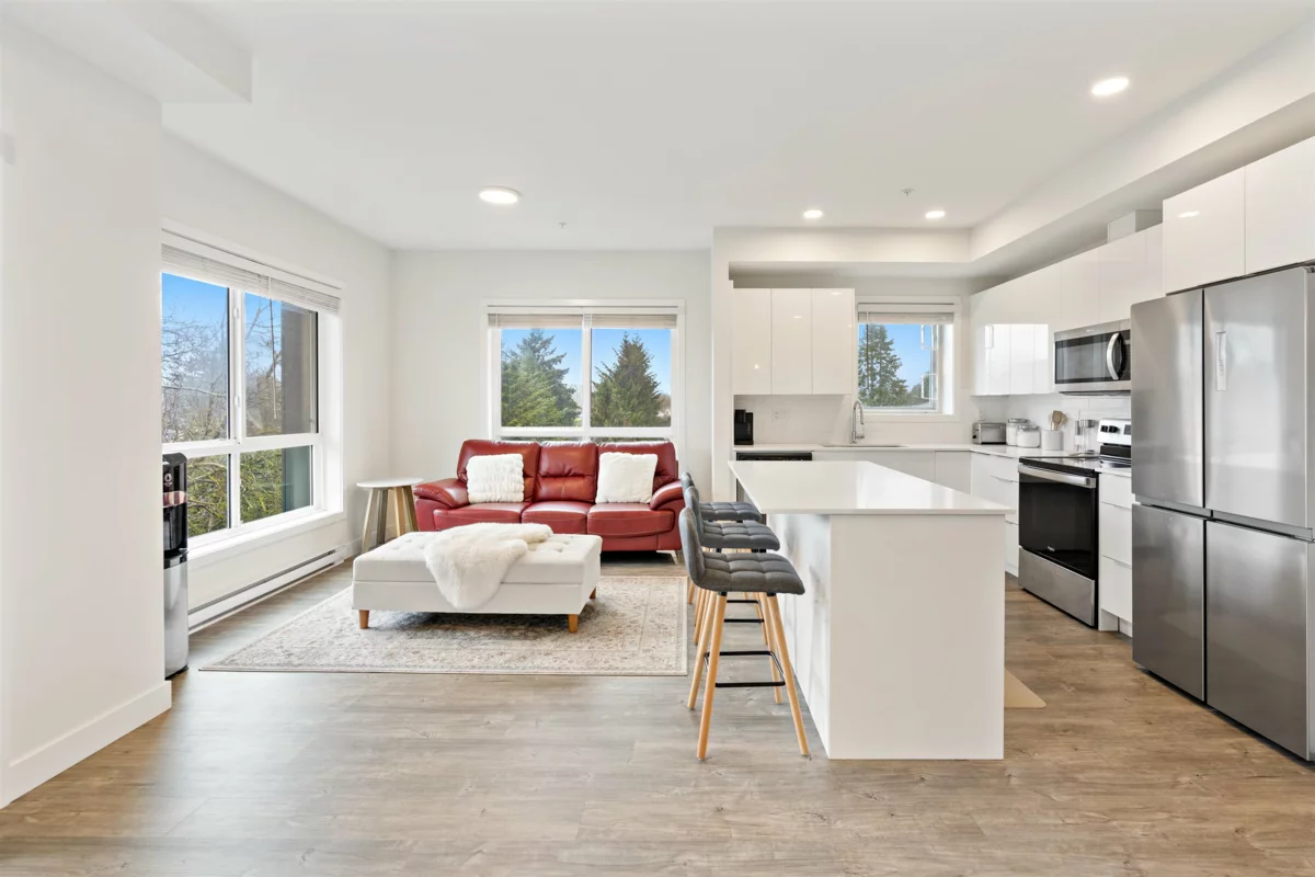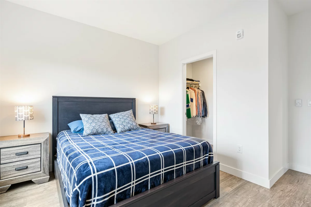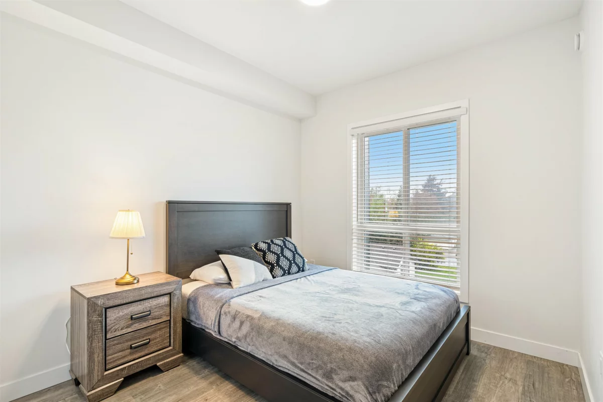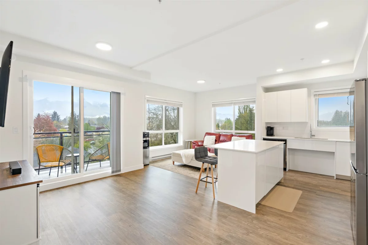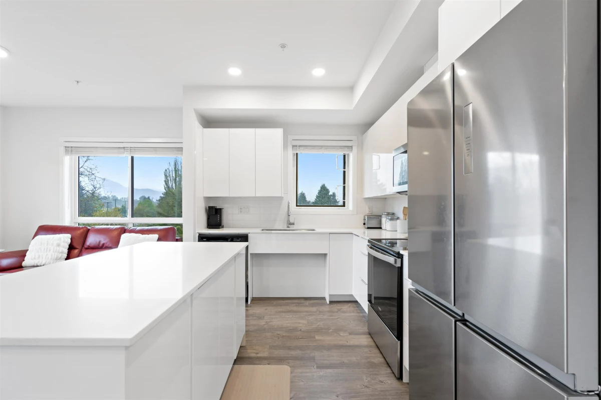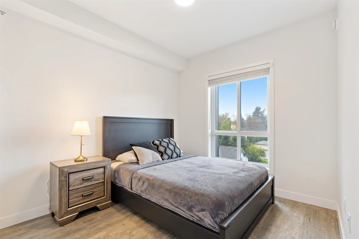 One of the best floor plans "The Robson" has to offer with a fully furnished 2-bed, 2-bath, 2 large parking stalls and a large storage locker corner unit in Chilliwack's historic area minutes away from the new Downtown Chilliwack. This bright, corner space boasts modern finishes, including a gourmet kitchen with stainless steel appliances and quartz countertops. The master suite features a walk-through closet to an ensuite bathroom. Enjoy easy access to public transport and nearby amenities, making it perfect for families.