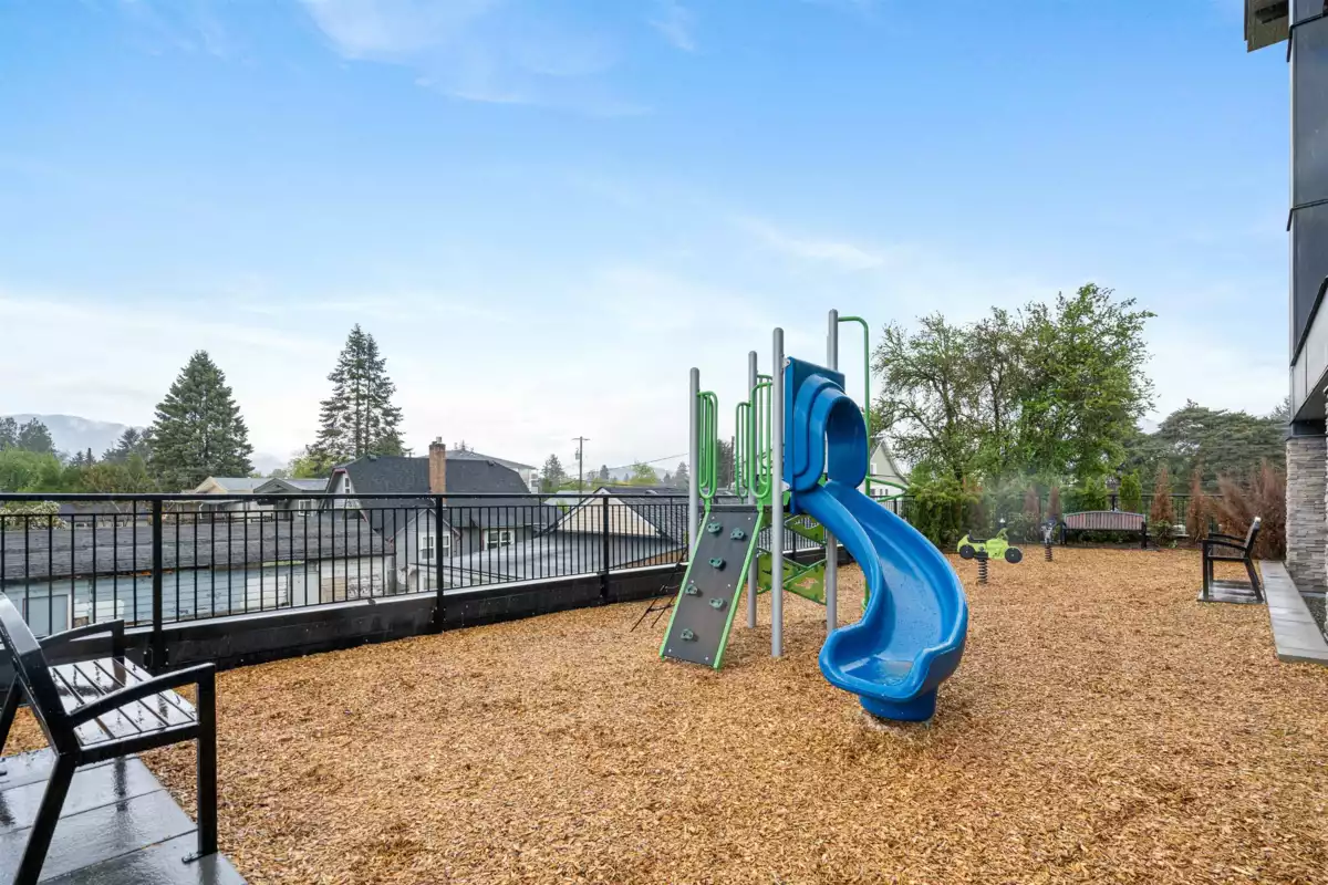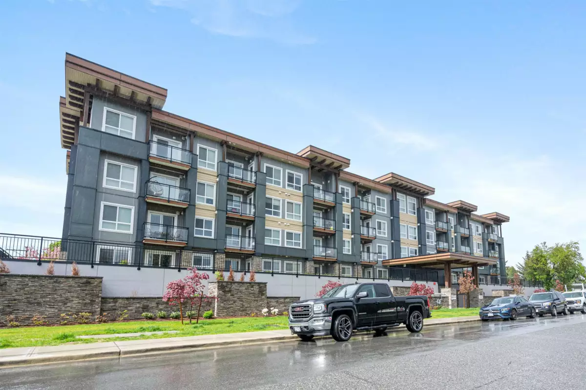 Welcome to “The Robson'' one of the most desirable floor plans in the building. This bright corner 2-bed, 2-bath home offers an ideal layout with two spacious parking stalls and a large storage locker, perfectly suited for modern living. Located in Chilliwack’s historic district, just minutes from the revitalized Downtown Chilliwack, this home combines charm with convenience. The open-concept living space is flooded with natural light and showcases contemporary finishes, including a gourmet kitchen with quartz countertops and stainless steel appliances, perfect for entertaining or everyday living. The primary bedroom features a walk-through closet and a private ensuite, creating a true retreat. Enjoy the comfort of a well-designed layout, excellent natural light, and a prime corner home.