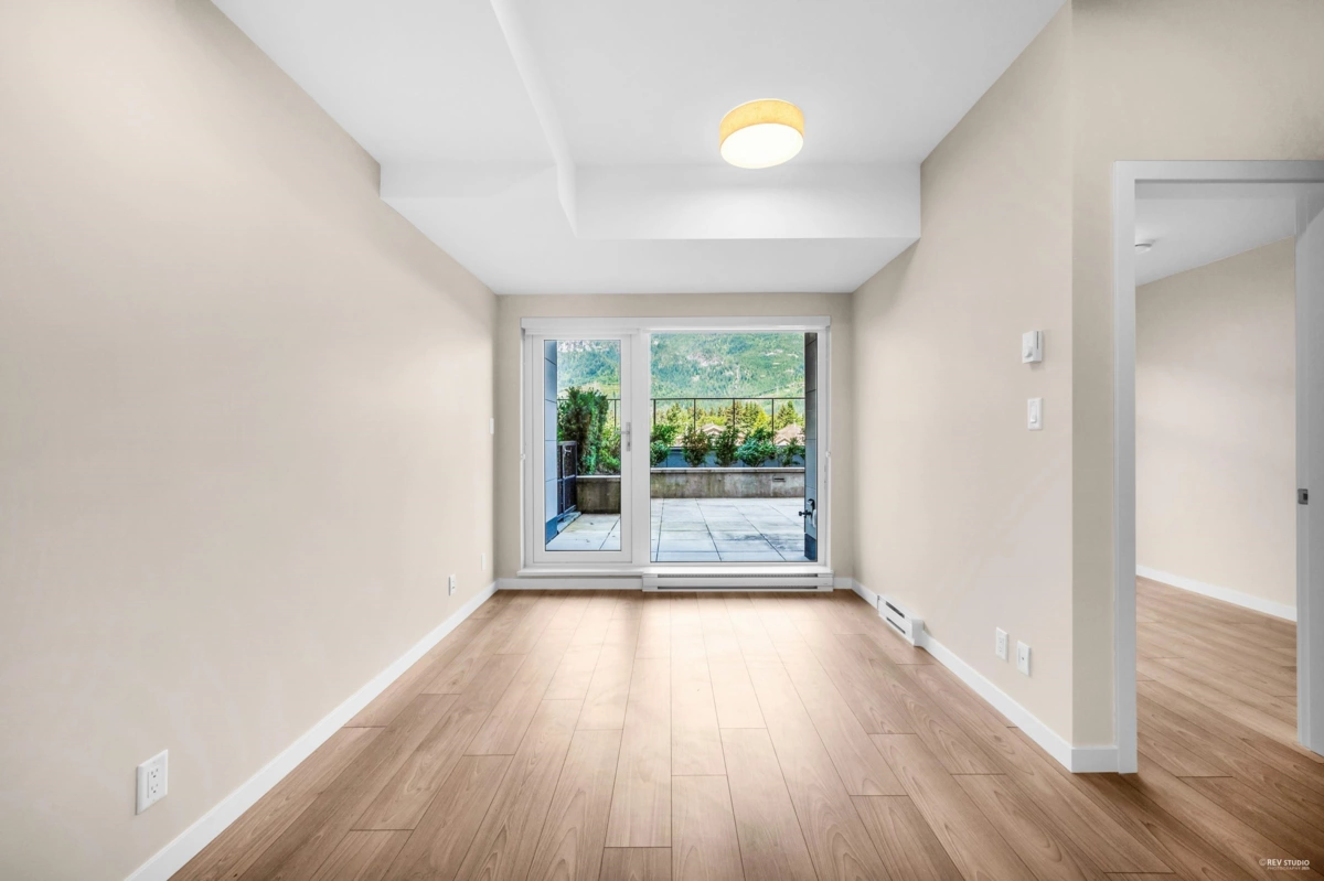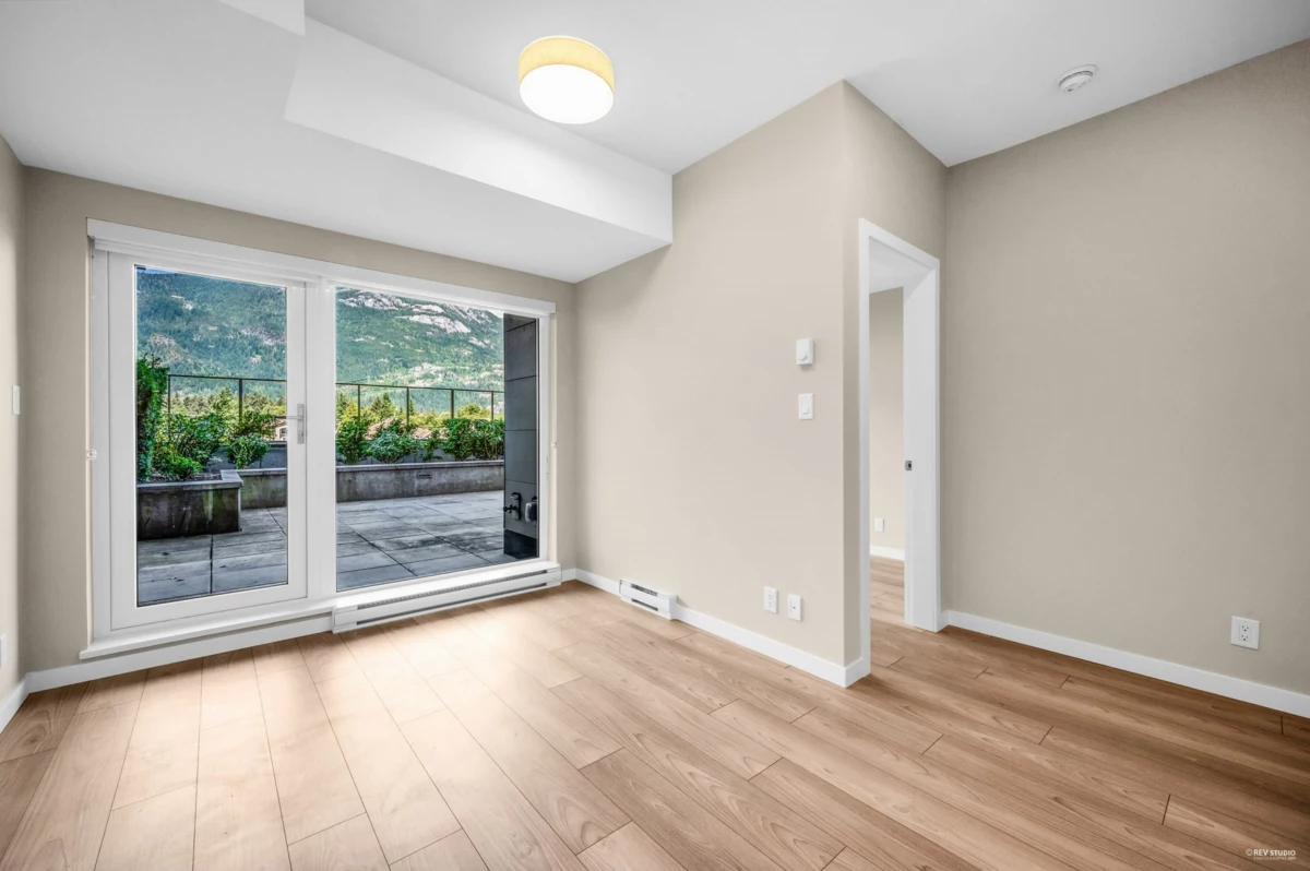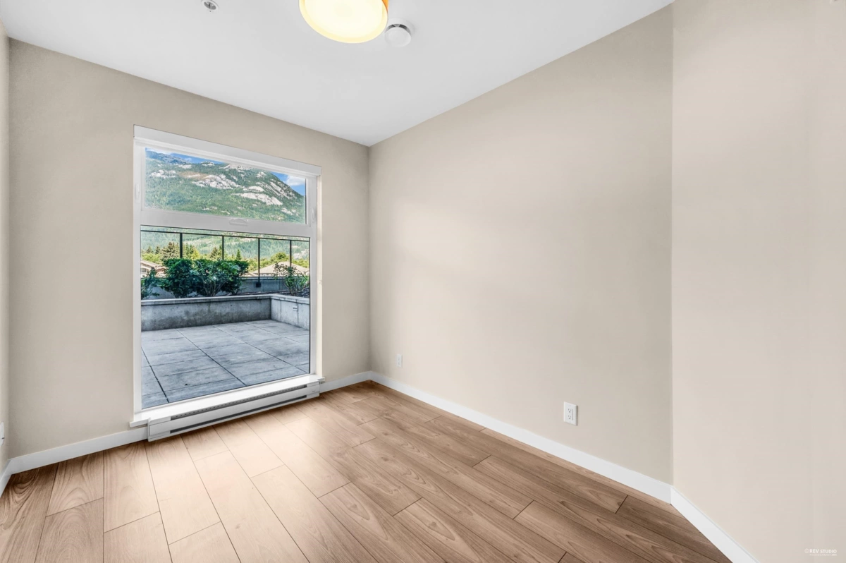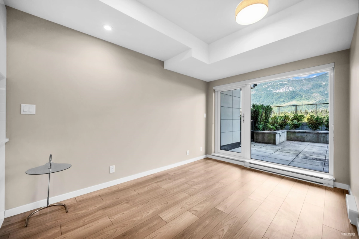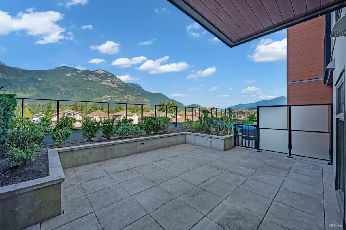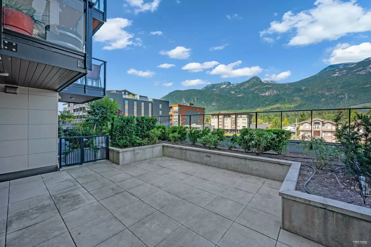 Discover this rare 2-bedrom, 1.5 bathroom NE inside unit featuring an oversized open patio-perfect for morning coffee, outdoor dining, or simply soaking up the fresh air. Floor-to-ceiling windows flood the home with natural light, while the smart, open layout offers a seamless flow between the modern kitchen, dining, living space, and open den. Situated in the heart of downtown Squamish, you're just steps from shops, restaurants, services, and everything this vibrant community has to offer. Whether you're searching for a comfortable home or a prime investment property, this is an opportunity that stands out for its location, design, and lifestyle potential. Don't miss the chance to make this special space yours!