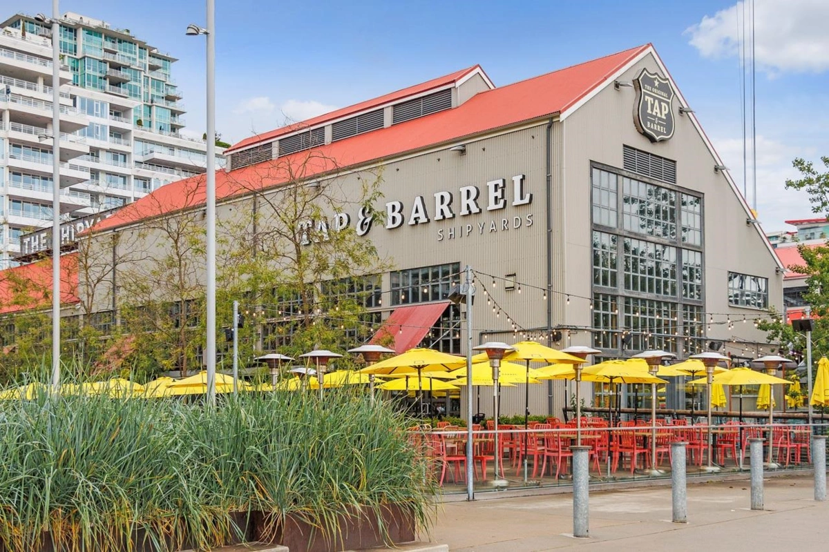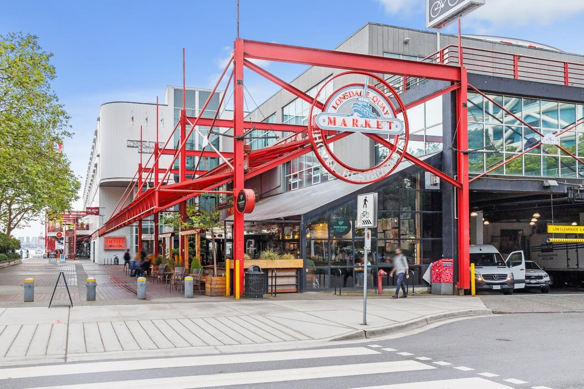 Incredible opportunity to own a beautifully updated 1-bedroom + den, PATIO unit in the heart of Lower Lonsdale. Offering 732 sq. ft. of bright, functional living with new laminate flooring throughout, new fridge + new dishwasher. The open layout flows seamlessly to a spectacular 441 sq. ft. private patio—perfect for entertaining, gardening, or quiet mornings. The versatile den works well as a home office, gaming space, or creative nook. This pet-friendly building allowing 2 cats. Many recent building upgrades too. Situated steps from The Shipyards, Lonsdale Quay, Waterfront Park, shops, restaurants+ the Seabus, this home combines urban convenience with North Shore lifestyle. With its rare outdoor space, updates, plus walkable location, perfect active LoLo living.