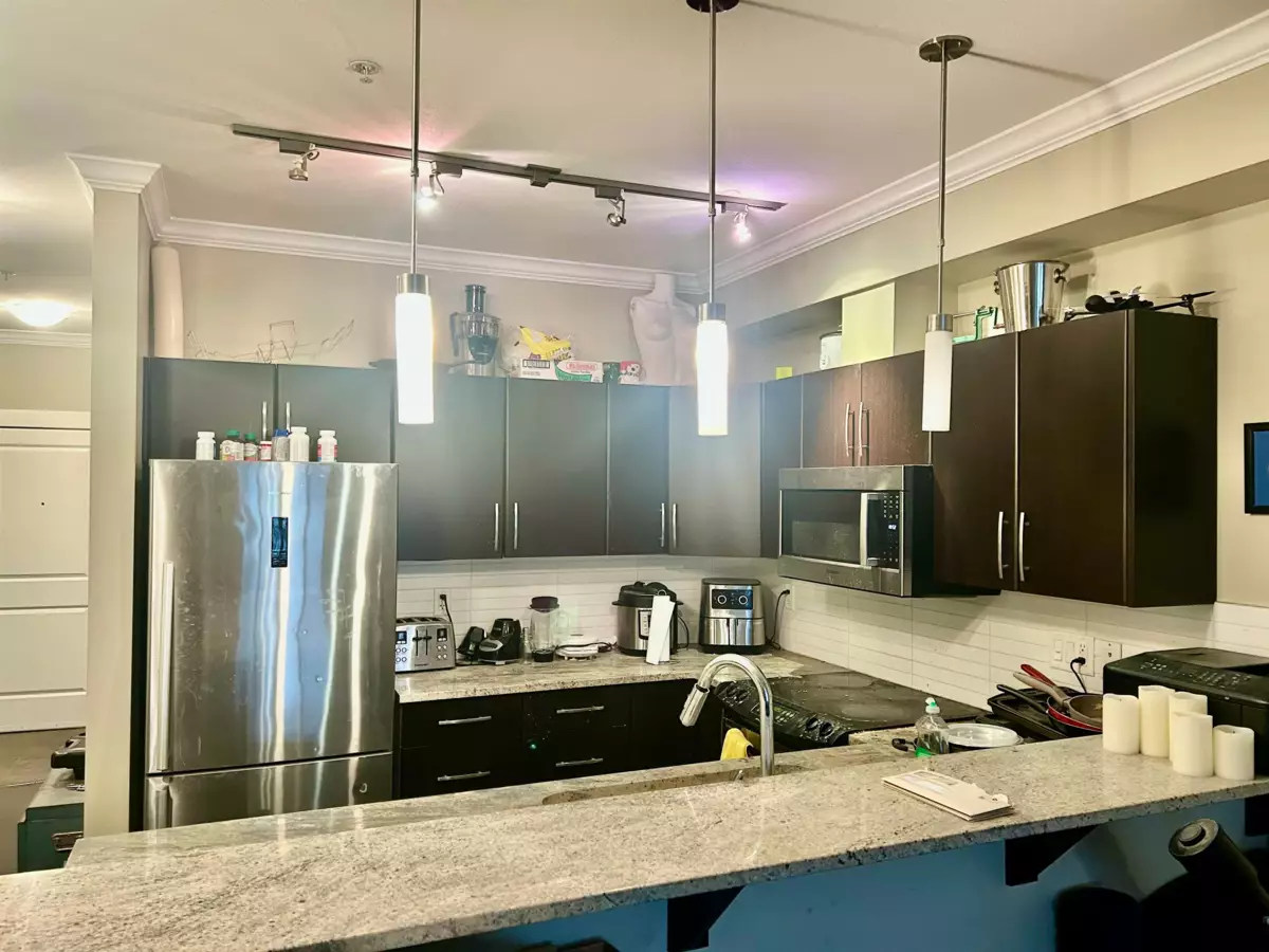 Beautiful Bright 2 bdrm/2 bath executive unit, right in the heart of downtown Abbotsford! Unit is fully outfitted with Granite and Crown molding throughout, FULL 5 piece ensuite bath included, Professional stainless steel appliance package! Electric fireplace. Unit boasts big in-suite storage/laundry. Sunny balcony perfect for morning coffee or evening relaxation. steps from coffee shops, local boutiques, restaurants, and all that this vibrant community has to offer.
