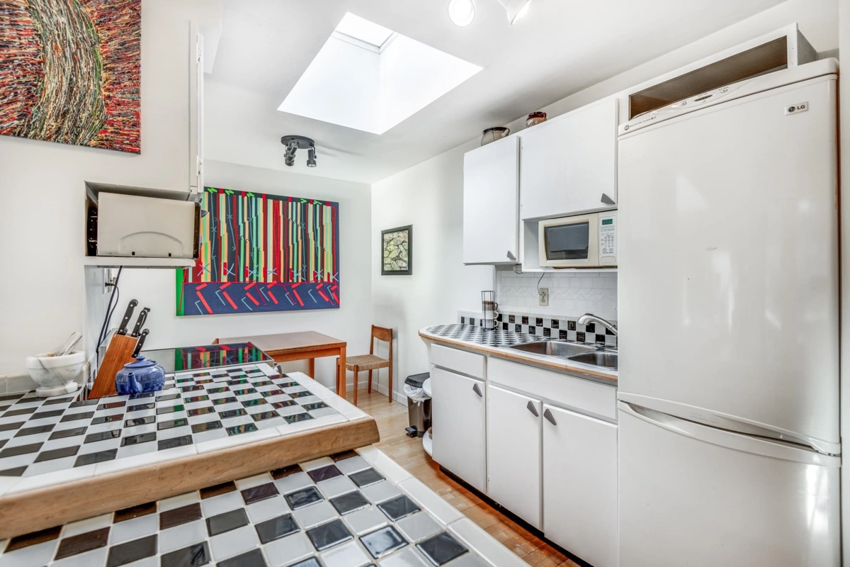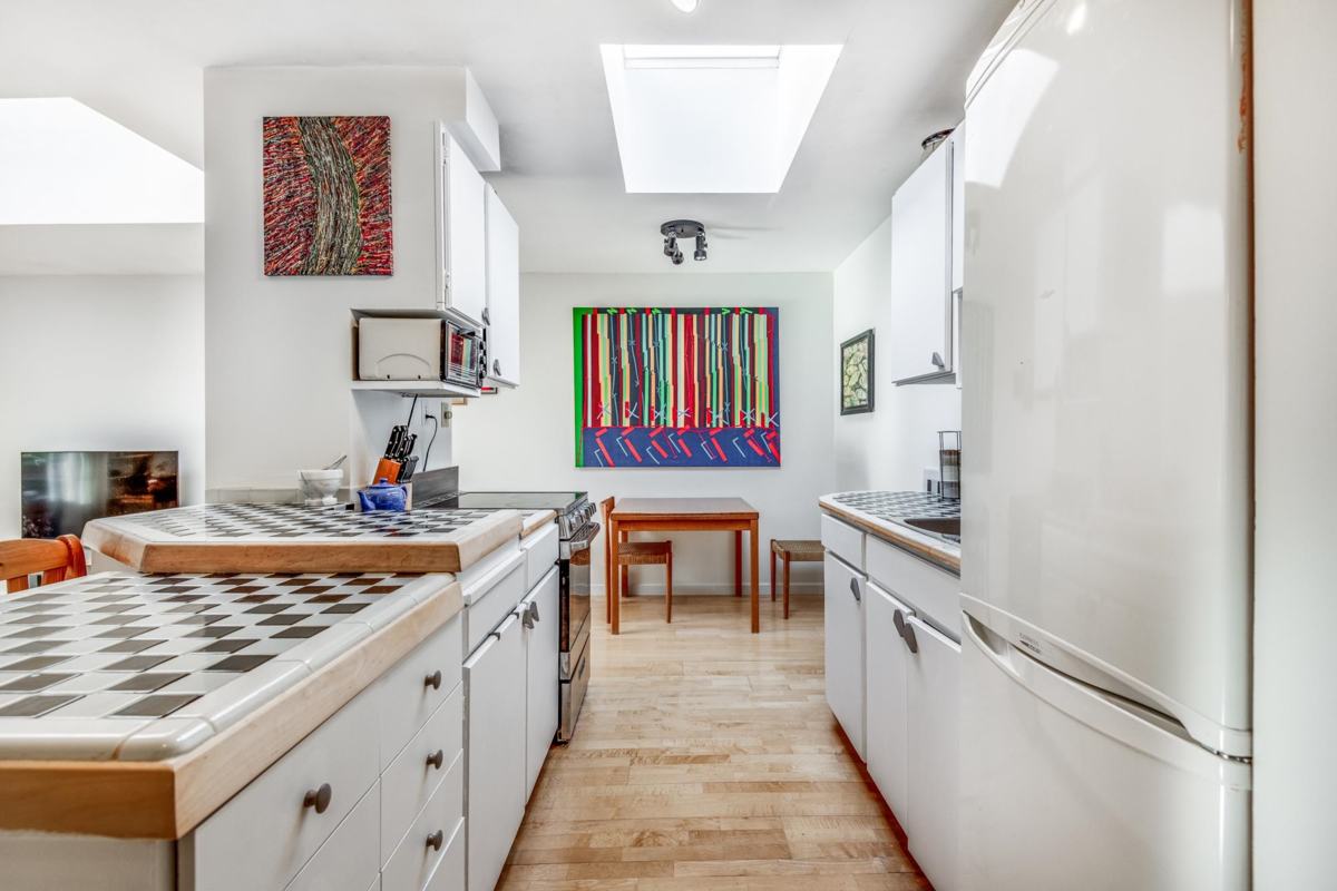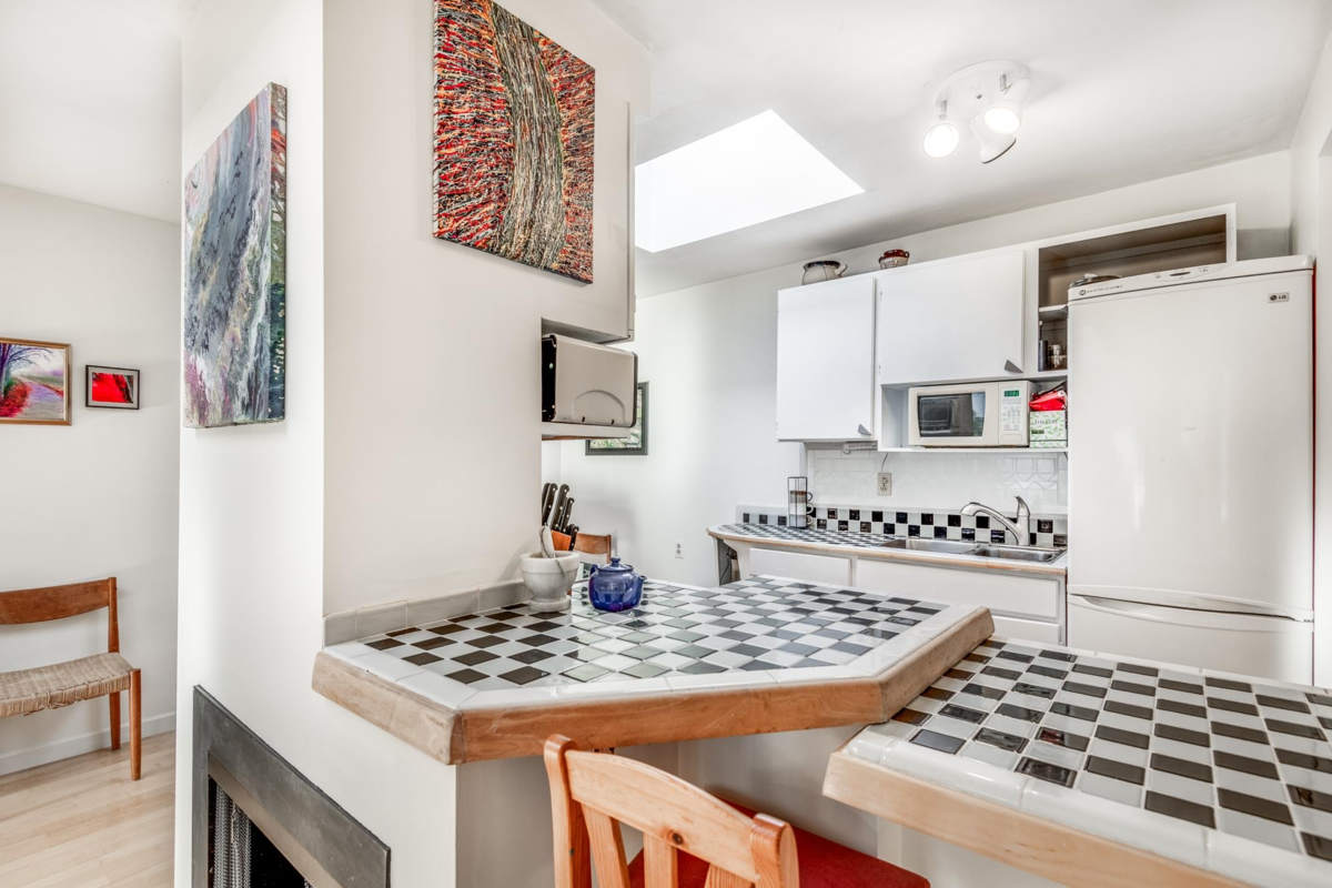 This well maintained 1 bedroom condo has an efficient classic layout. Large bedroom and living space with beautiful treed balcony. Rare top floor unit with skylights! Move in ready, or bring your design ideas! Steps to everything main street has to offer, plus walking distance to Olympic village, seawall, skytrain (including the new Broadway line), and parks. Comes with 1 parking, bike room. Strata fees include heat and hot water.