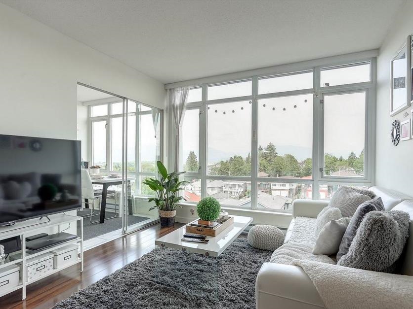 Excellent Location. Nanaimo/Kingsway. Quality built by renowned Wall Centre Development Group. Spacious, functional layout, no waste space. Most sought after 1 Bedroom, 1 Den and a Flex room. Floor to ceiling wall to wall windows welcomes bright natural light and beautiful view of North shore mountain. Immaculate, well maintained. Beautiful contemporary gourmet kitchen with gas stove, stainless steel appliance package. Great amenities: Fully professionally equipped 2 level fitness center, party room with garden terrace. Well managed with low maintenance Fee. Convenient and central location. Minutes from Nanaimo Skytrain Station. Pets friendly and rental allowed. 1 parking, 1 storage