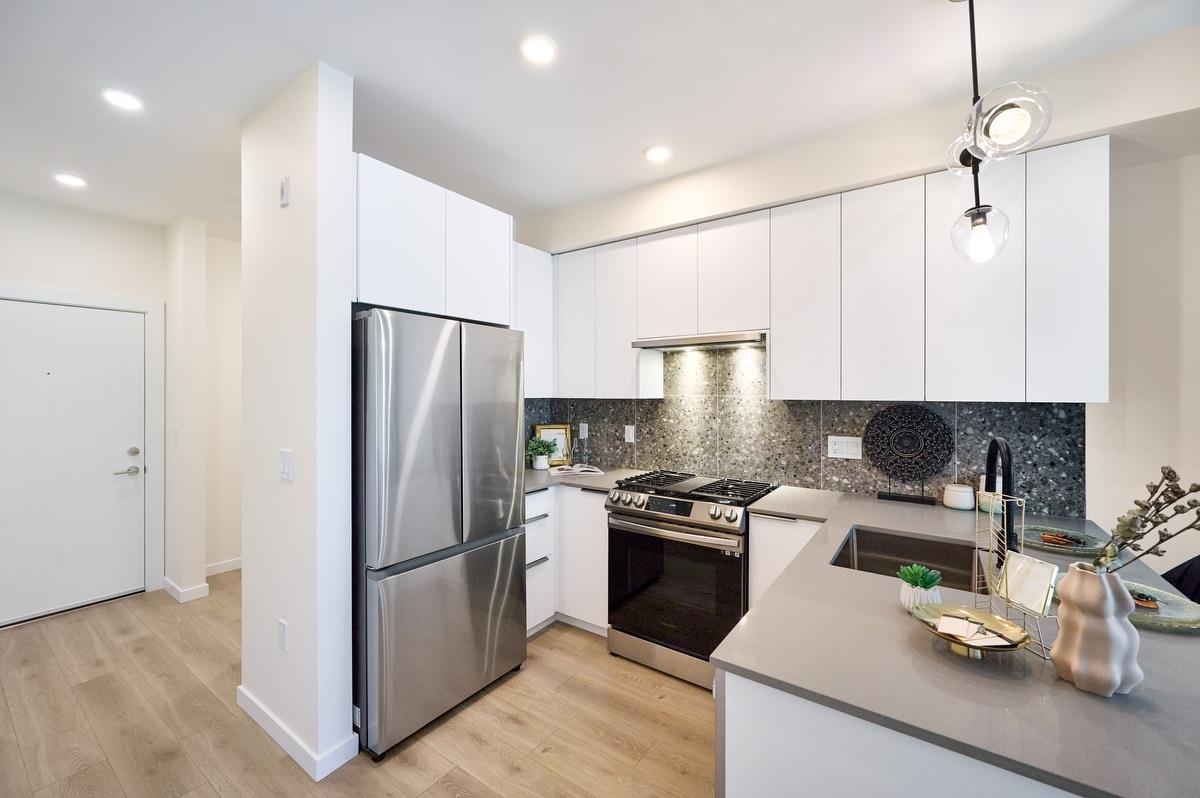 Hive 1, the newest building at the core of Willoughby. A highly coveted location as plenty of young folks are moving to this promising township and calling it home! Our building is the closest complex to Willoughby Town Centre, where you'll find Independent Grocer, Shoppers Drug Mart, BC Liquor and plenty of restaurants and services. South facing unit with tons of natural lighting. Home has a green field view that will never be blocked. Spacious 1 Bedroom and perfect sized den for a home office. Desired wraparound kitchen, boasting urban cabinetry, quartz countertops, and high-end stainless steel appliances. Hardwood wide plank flooring throughout. 1 Parking and 1 locker. Brand new and never lived in! Open house 2-4pm Sat&Sun 13/14
