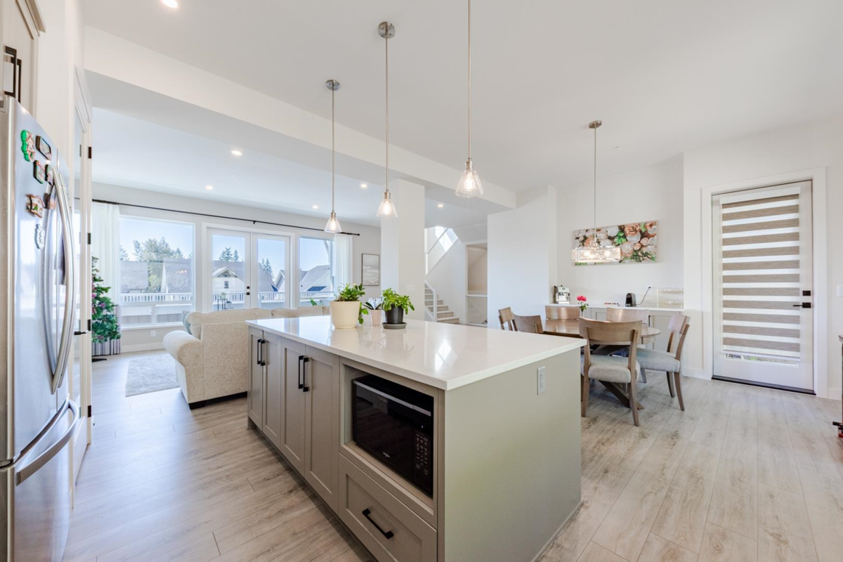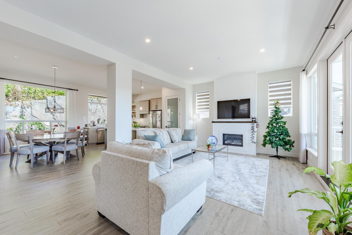 Welcome to 31527 Burnham Place! This 3-level home offers over 3,200 sq.ft. of modern living in a family-friendly neighborhood. The main floor features a bedroom, full bath, and rec/office space with double garage access. The open-concept second floor boasts a spacious living and dining area with 10’ ceilings, oversized windows, and seamless access to a covered patio and balcony. The gourmet kitchen includes quartz counters, a large island, and stainless steel appliances. Upstairs offers 3 bedrooms, including a luxurious primary with walk-in closet and spa-like ensuite, plus laundry and full bath. Enjoy a private fenced backyard backing onto green space, close to schools, parks, and amenities.