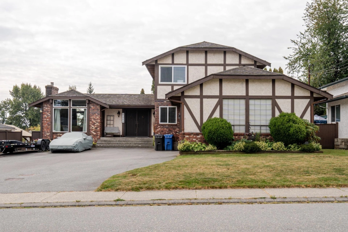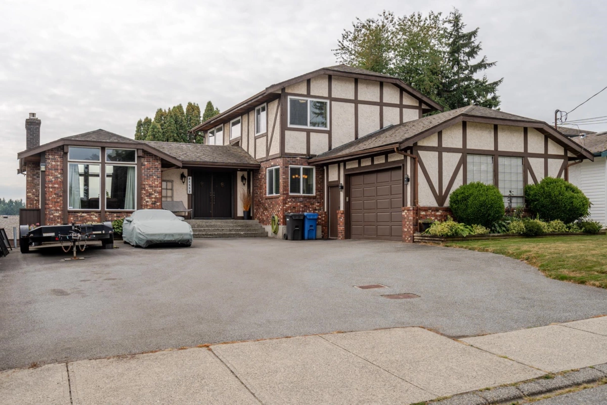 Unique Custom Built “Contemporary Westcoast Tudor” 2-storey home with full basement in sought-after Sunnyside Neighbourhood! This spacious 3200sqft+ family home offers 4 bedrooms (could easily be 5 bedrooms) and 4 bathrooms, featuring an impressive foyer with a sunken living room and formal dining area—perfect for entertaining. Enjoy the exposed wooden beams, upgraded flooring on the main and extra large driveway for at least 8 vehicles. Relax in the hot tub out on the extra large deck. Currently includes a 1-bedroom in-law suite with potential to convert into 2 bedrooms. Take in the stunning Mt. Baker view from the vast amount of upgraded windows. A rare blend of charm, comfort, and functionality in one of the most desirable neighbourhoods.
