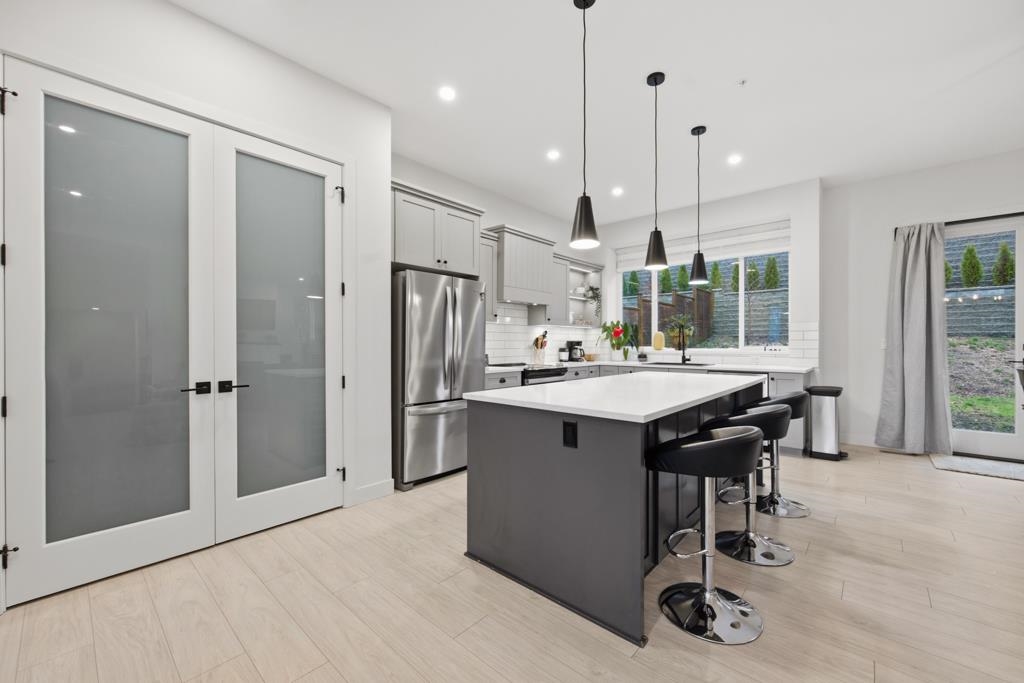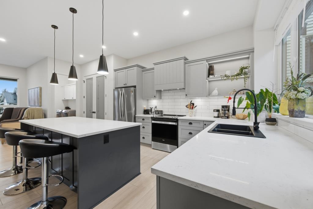 Corner lot beside greenbelt with NO GST. Built in 2023 by the well-regarded Morning Star Homes, this 3,430 sqft home sits on a quiet cul-de-sac in a sought-after neighbourhood near the sports park & golf course. Easy highway access! Enjoy a large, south-facing, covered front porch with gas BBQ hookup plus a fenced backyard with patio seating. Inside, the home offers 10’ ceilings, a gas fireplace, premium appliances, quartz countertops, and wide-plank flooring. The bright, open-concept main level is ready to suit your lifestyle. Upstairs features an oversized primary suite including a sitting area with large windows, plus two well-sized bedrooms. The lower level provides excellent flexibility, with a wet bar easily convertible to a one-bedroom suite with separate entrance. A must see!