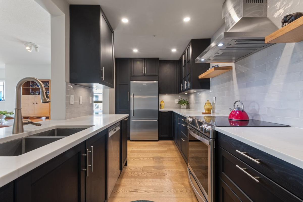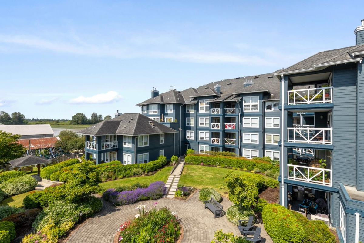 Welcome to BRITANNIA in Steveston! This bright, airy & beautifully updated south-west corner home showcases stunning water & sunset views over the serene garden courtyard. A spacious layout features 2 big bedrooms, 2 bathrooms, great in-suite storage & a generous, covered balcony to indulge in the fresh sea breeze. Enjoy a gourmet kitchen with quartz countertops, custom cabinetry & premium appliances. Oak hardwood floors flow through the main living areas, with newer carpets in both bedrooms. Additional features include radiant in-floor heating, custom closets, 2 secure parking, EV charging & a fitness room. Unbeatable location along the River Boardwalk - a short stroll to the restaurants & shops of Steveston Village & excellent schools.