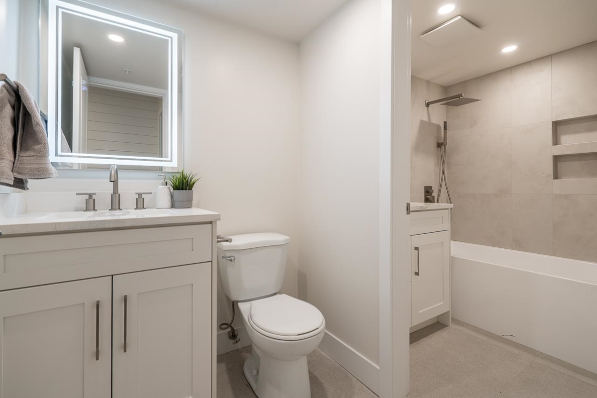 Welcome to this one of a kind top-floor condo with numerous upgrades. Step inside to discover a modern and inviting atmosphere, featuring new carpet, fresh paint, and a completely renovated bathroom. The bathroom boasts a tiled shower, modern fixtures, a light-up LED mirror, and heated floors. The kitchen has been upgraded with modern appliances, a new backsplash, and tile flooring. The upgraded wall features throughout add a touch of elegance to the space. Step outside to a spacious covered balcony, perfect for relaxing or entertaining. Conveniently located near shopping, schools, and transit, this condo offers easy accessibility. It also includes tow parking spots, a storage unit. Don't miss the opportunity to own this stylish and convenient condo with desirable upgrades.