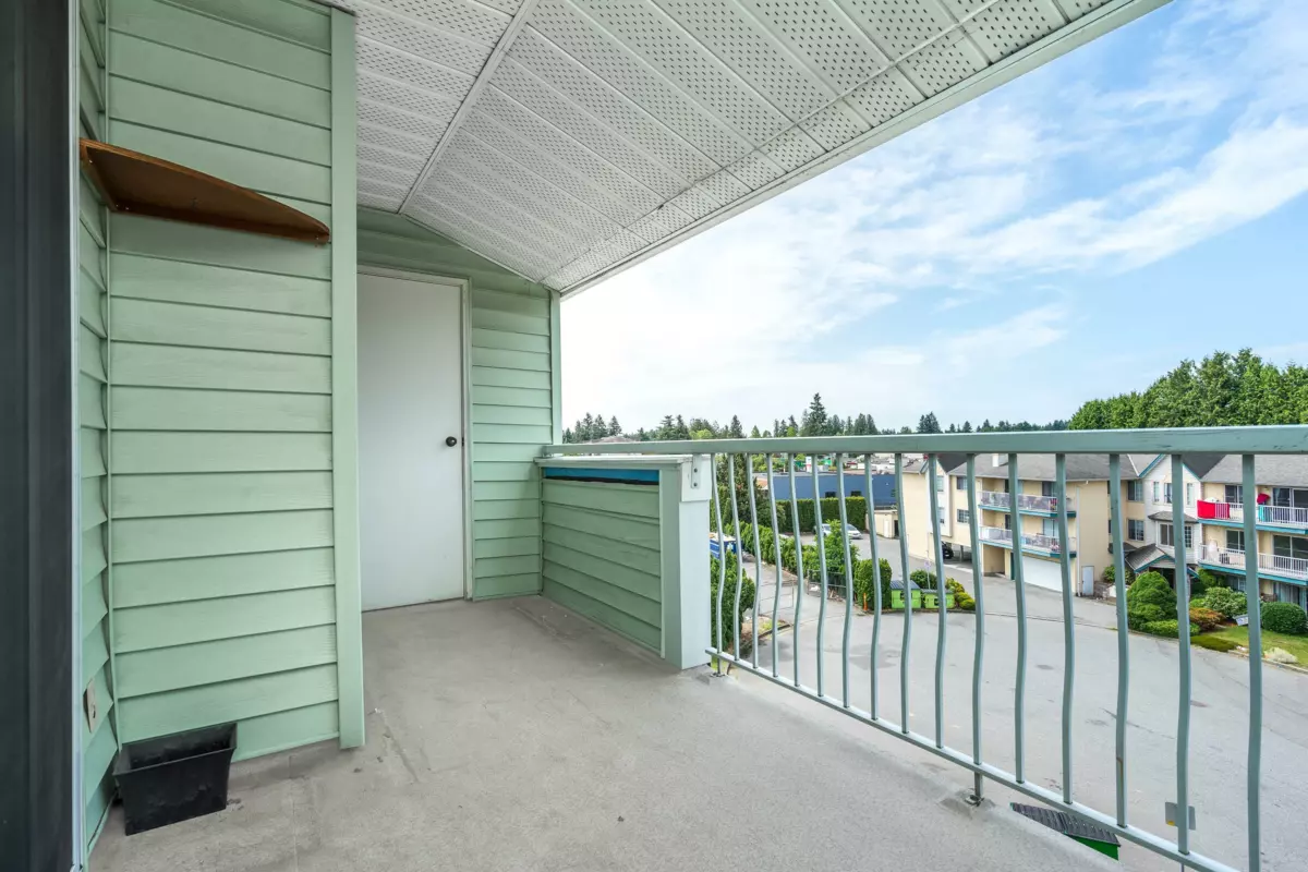 Top Floor at Fernwood Manor! Welcome to one of West Abbotsford's best 55+ communities. This spacious TOP FLOOR home offers two large bedrooms and one bathroom spread over 1043 square feet. Enjoy wide hallways for great accessibility throughout. The kitchen offers new stainless steel appliances and the huge west facing deck features a storage locker and offers gorgeous views of the mountains the perfect place to have your morning coffee or to enjoy evening sunsets. Pets not allowed. Downsize your home without downsizing your life. Centrally located, Fernwood Manor offers two guest suites, a workshop, exercise room, pool table, meeting room, gorgeous gardens, and an amazing community. Strata fees include heat, hot water, AND electricity! Book your showing today!