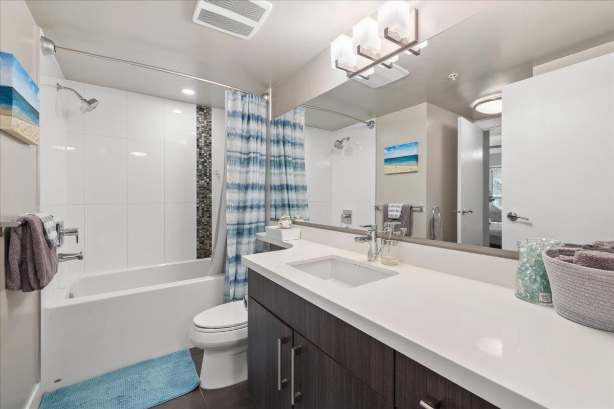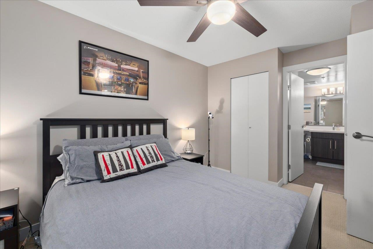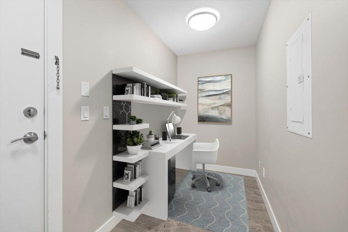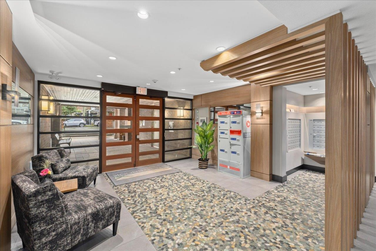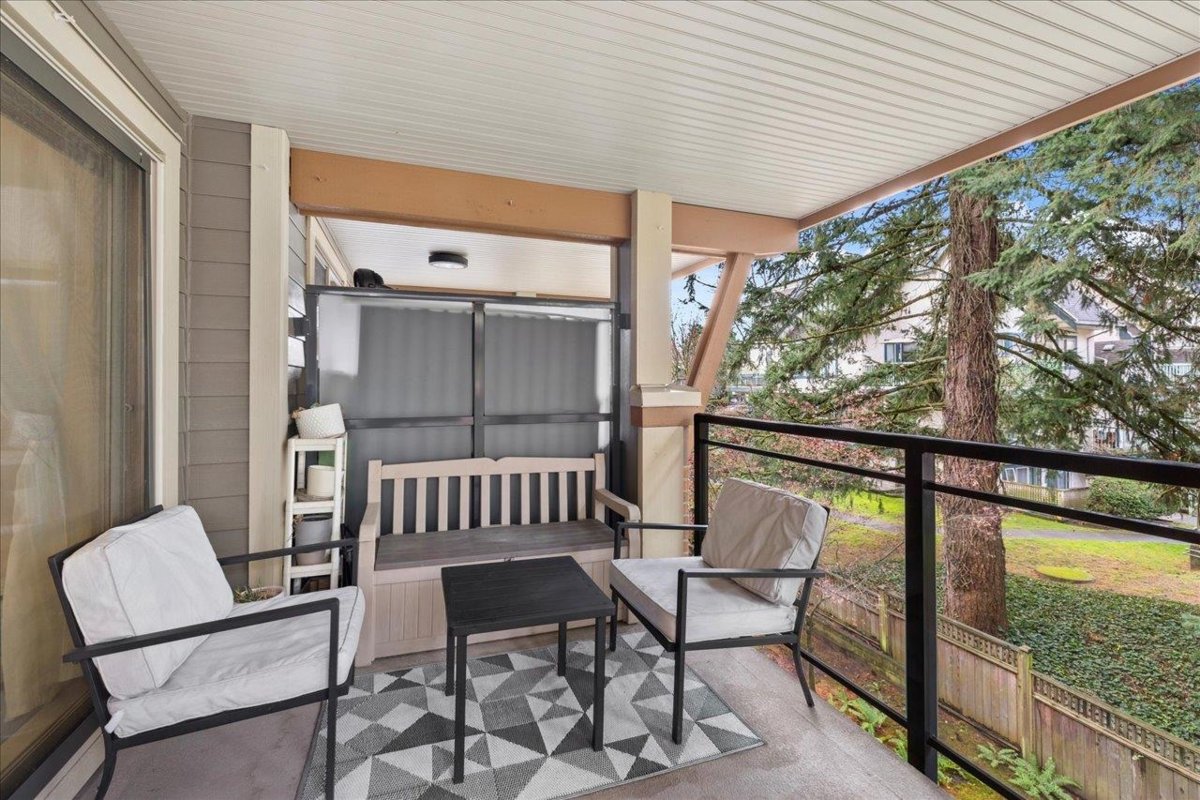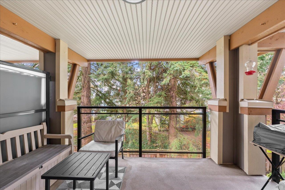 Storybrook by renowned Ledingham McAllister is a quality building awarded best low-rise by UDI in 2014! Spacious ~700 sqft 1 bed + den unit features open concept living: a gourmet kitchen w/ stone counters & S/S appliances that opens to your dining & living areas. Primary bedroom with cozy carpets & reading nook make for a perfect morning, plus easy cheater ensuite access. Open den is a perfect home office or extra storage space. Serene treed exposure is private w/ no one looking in - on quiet side of the building w/ a covered balcony to enjoy year round. 1 parking & 1 locker. Location conveniently in heart of S Burnaby’s city centre yet nestled within a quiet established residential area close to Skytrain, parks/trails, Edmonds Community Centre, grocery & shops @ Highgate Village & more.