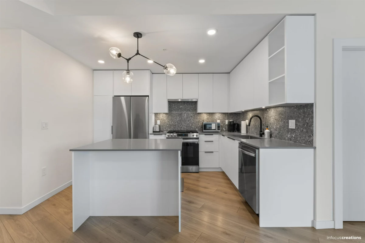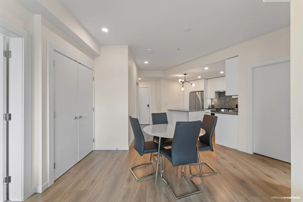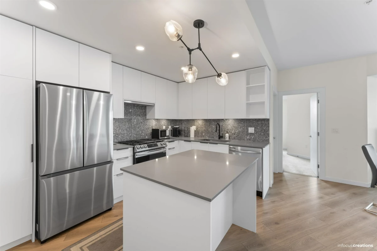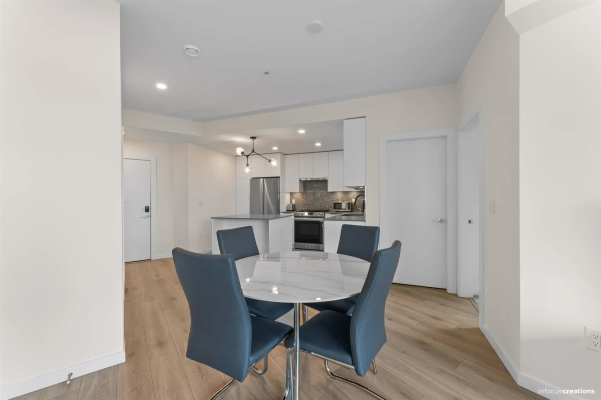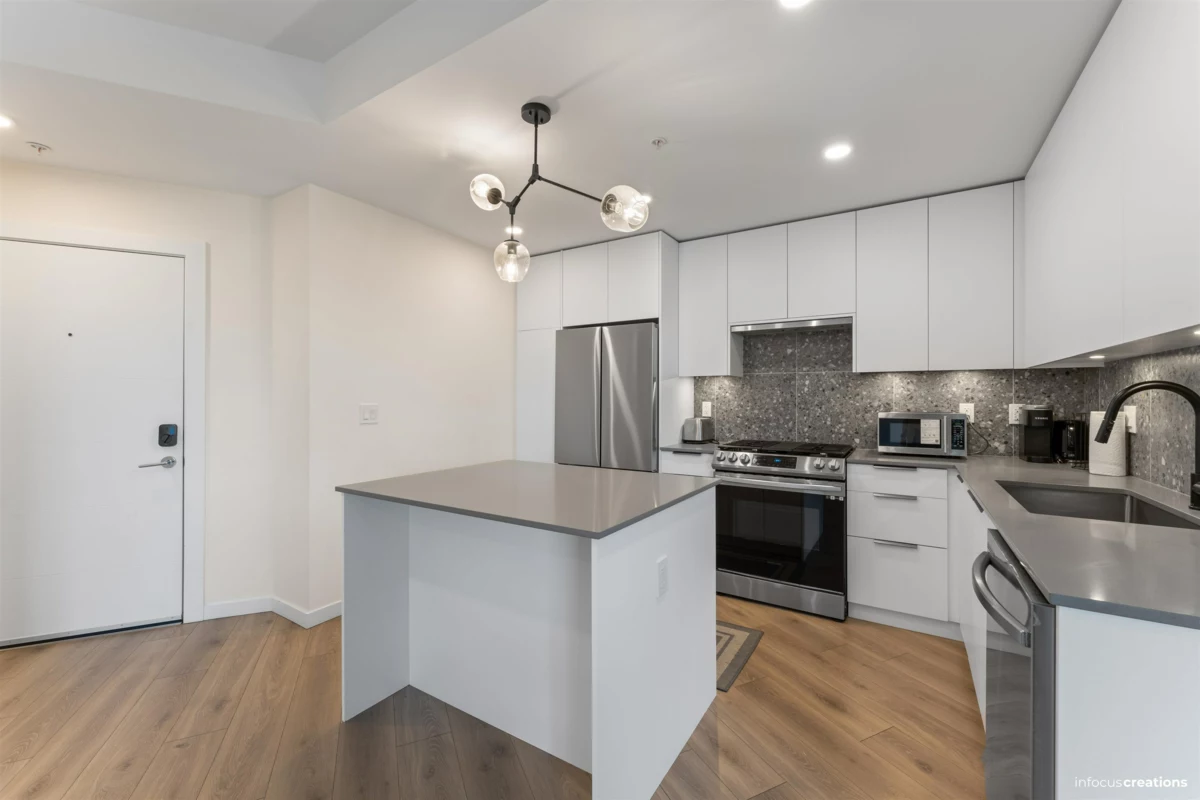 Welcome to this beautiful 2-bedroom + den home in a new 2024-built community in Langley. This 963 sq.ft. third-floor unit offers a bright and well-planned layout with excellent natural light and a quiet, open outlook. The home features a nice contemporary kitchen with modern cabinetry and a functional layout that flow seamlessly into the living and dining areas-perfect for everyday living and entertaining. Enjoy two spacious bedrooms, a versatile den ideal for a home office, and a well-appointed bathroom. Located directly across from an elementary school, this home is perfect for families. Enjoy close proximity to parks, shopping, transit, and major routes, all while living in a newer building. Rare to find 2 Secured Parkings.
