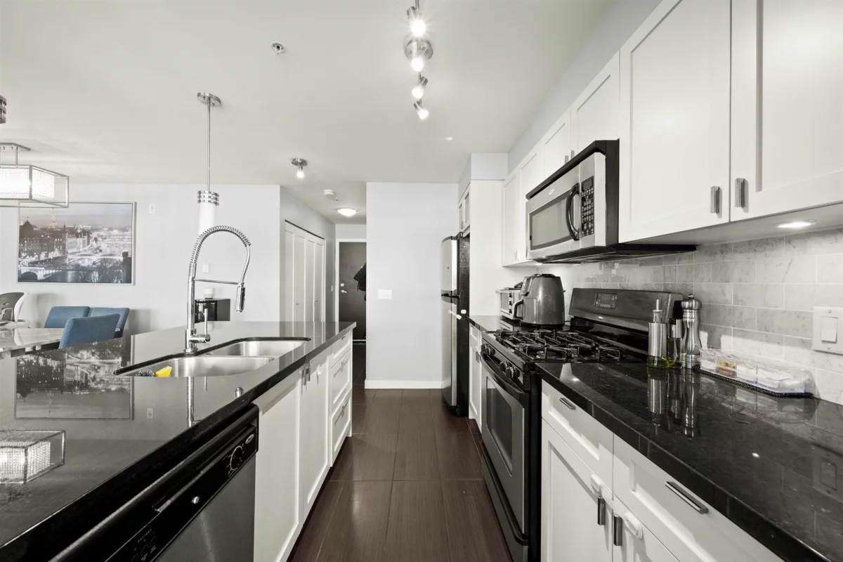 Bright 2 bed, 2 bath corner unit with over 1,000 sq ft of open-concept living - rare for East Van. Welcome home to Jasmine by Aragon. Floor-to-ceiling windows showcase North Shore views and fill the home with natural light. Entertain in the spacious kitchen with large quartz island and gas range. Enjoy a covered balcony plus Juliette doors for great airflow. Generously sized bedrooms, including a private primary with walk-through closets and ensuite. 2 parking, 1 locker. Pet & rental friendly. This is quintessential East Van living: steps to transit (kootenay loop station), parks, PNE, schools, bike routes and top East Van dining and cafes. You are a quick short drive to downtown, Brentwood or North Van. A rare combination of size, layout, and location - don’t miss it. OH Jan 24/25: 2-4PM