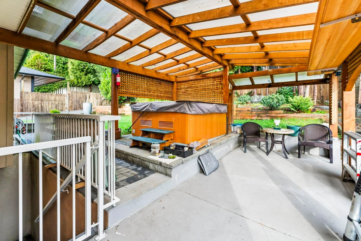 Tucked into a quiet cul-de-sac in Coquitlam East, this well-cared-for home sits on a 7,810 sq ft lot with 55 ft frontage, partial water views, and a private, tree-lined backyard. The interior offers bright, comfortable living spaces, generous principal rooms, and a functional kitchen with solid wooden cabinetry and ample storage. The basement entry layout provides excellent flexibility with additional living and recreation space ideal for families, guests, or home office use. Outdoors, enjoy a level yard, mature landscaping, and a covered hot tub area that extends year-round usability. Double garage, abundant parking, and close proximity to schools, parks, transit, and major commuter routes complete this well-rounded offering in a long-established neighbourhood.
