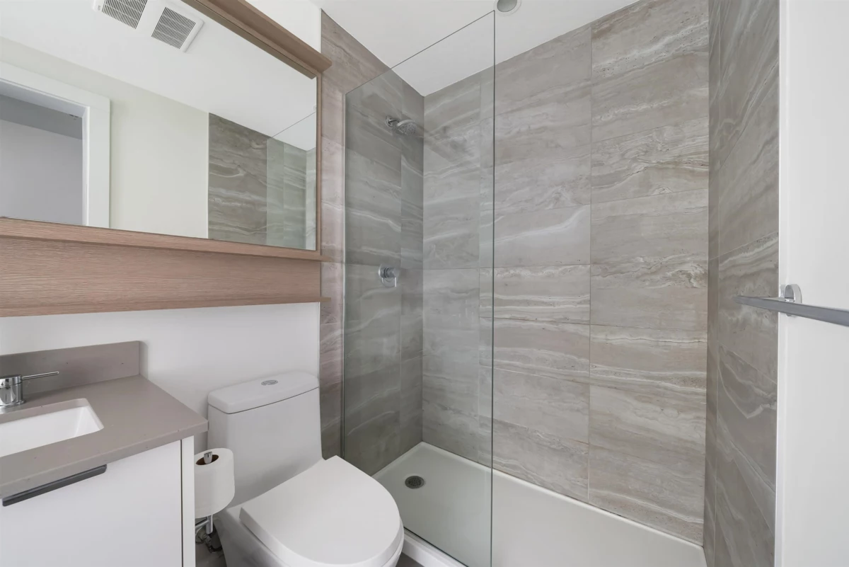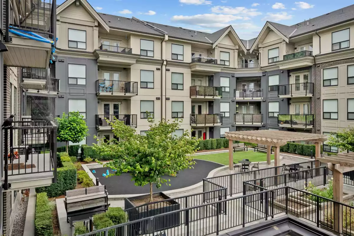 Okay, picture this: You wake up, open the blinds, and bam--Aurora Roasters two minutes away, already grinding beans. You think: I'll grab a flat white, maybe a scone. On the way, you pass Totally Book-ish, decide, yeah, I'll buy that novel I've been "meaning to read." Back home, 956 sq. ft. of smart space: gas range (yes, real flames), stone feature wall (instant character), AC (because Abbotsford Summer = furnace). Two bedrooms + den = choices: work, workout, crash pad. Primary suite? Walk-through ensuite to a closet that eats your wardrobe whole. Patio? Half street buzz, half courtyard calm. Built 2020, pet-friendly, parking + storage included. And oh yeah--the new bus loop is across the street. So, basically, downtown lifestyle without the chaos of a big city.