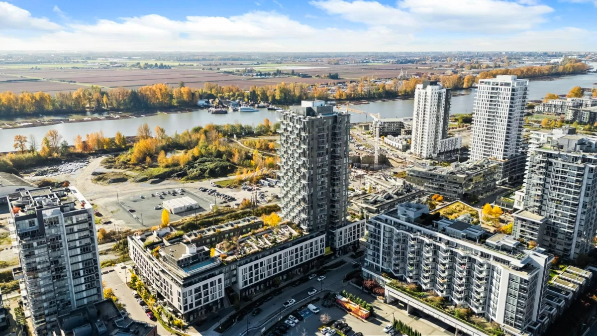 Welcome to Avalon 3 in the River District—modern, spacious, and designed for comfortable everyday living. This bright and spacious home features air conditioning ,floor-to-ceiling windows and an open layout with a Chef’s kitchen and large island table. The well-planned interior offers 3 generous bedrooms, 2 full bathrooms, and a versatile den perfect for a home office or storage. Enjoy two large private balconies, ideal for entertaining or relaxing while taking in the sunset views. Additional features include 2 parking stalls (1 equipped with EV charging) and 2 storage lockers. Residents have access to impressive amenities such as an outdoor pool, hot tub, fitness centre, concierge, clubhouse, and additional EV charging stations.