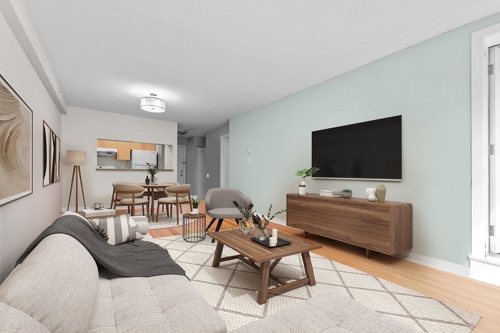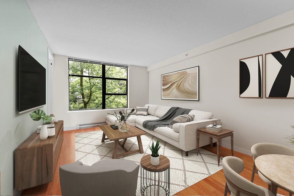Welcome to URBA by Bosa Properties! This expansive one-bedroom condo boasts an oversized balcony perfect for relaxation and entertaining, offering serene tree views that bring a touch of nature to your everyday life. This open-concept layout ensures a spacious and airy feel, ideal for first-time homebuyers, downsizers, or growing families looking for a comfortable and versatile space. Conveniently located close to SkyTrain transit, you'll enjoy easy access to public transportation, making your commute a breeze. Plus, with restaurants and shopping just around the corner, you'll have everything you need right at your doorstep. 1 Parking and 1 Storage included, rentals allowed and pet are welcome! OPEN HOUSE DEC 14+15 2:00 - 4:00
