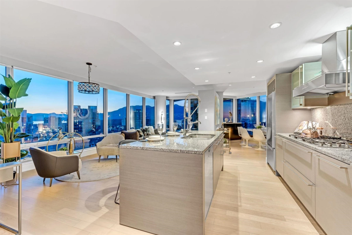 Welcome to a world of unparalleled luxury living at Shangri La! This is a rare and unique opportunity to own a piece of an exclusive building. This fully renovated 2 bed and den, comes with 2.5 bathrooms and a balcony with panoramic views of the city, coal harbour and English Bay. This is a true gem, providing a rare chance to experience the epitome of luxury living in one of the most prestigious buildings the city has to offer. Enjoy the convenience of having access to all the shops along Alberni St, just a short 2 min walk from the building providing easy access to all of your daily needs. The amenities of Shangri La are second to none. Take advantage of the building's full-service spa, fitness centre, pool, and concierge service to ensure that every aspect of your life is catered to.