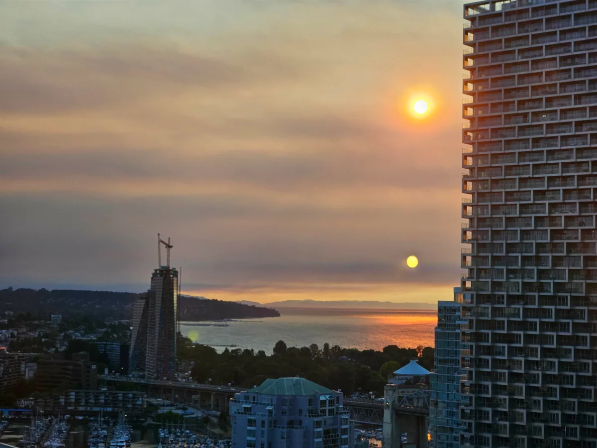 This one-of-a-kind Unit 3202 offers stunning sunset views from its SW corner perch overlooking False Creek & English Bay. This 2 bed, 2 bath + den + office sub-penthouse boasts large windows in every room, breathtaking views throughout. Kitchen features granite counters and S/S appliances. 9’ ceilings, hardwood floors and gas fireplace. Only 2 units on level 32 added privacy! Amenities include concierge, party room, indoor/outdoor pool, Jacuzzi, sauna, gym, guest suite, an elegant lobby with passenger drop-off & and an outdoor courtyard with beach volleyball court. Pets & rentals allowed. Prime location—steps to SkyTrain, dining in Yaletown, grocery shopping & the seawall. George Wainborn Park is one block away Bonus:* 2 parking 1 storage locker.
