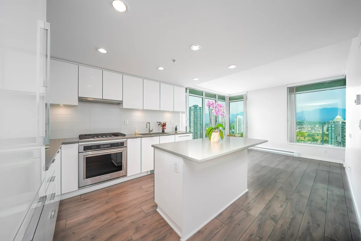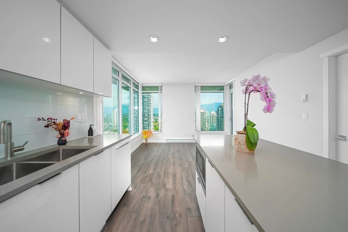 Welcome to Fulton House by Polygon in North BBY Brentwood Park. Rarely 2beds 2baths North West CORNER unit. This home has been kept in new condition, features high-end kitchen appliances, gas stove, huge island and large usable balcony. Living room is surrounded by lots of windows to get plenty of sunlight and allow to enjoy city & mountain views at the high 32nd floor. 2 bedroom are parted to provide more privacy. Big master-bedroom with unique 2 side-by-side closets. 1 parking 1 locker. Low strata fee with best amenities (outdoor pool, sauna, gym etc). Walk distance to Brentwood mall, restaurants, banks, shops, TWO skytrain stations. Drive to schools (SFU, BCIT, BBY north secondary etc) in 15mins.