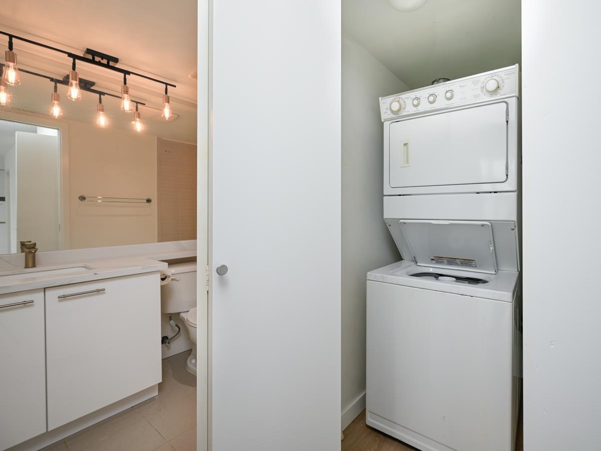 Located in the heart of downtown Vancouver, this sleek one bedroom residence boasts a practical layout, maximizing every inch of space without waste. Enjoy the breathtaking view of mountains every-time you look out the windows. Take advantage of brand-new flooring, upgraded light tone quartz countertops, w/undermount kitchen sinks, creating a bright and roomy interior. The thoughtful plan and design ensures seamless daily living, perfect for professionals and urban dwellers. With proximity to vibrant entertainment districts, public transportation, and scenic waterfronts, being close to Costco, T&T and the vibrant Olympic Village, offering a plethora of dining, shopping, and recreation experience. This home combines style, functionality, and convenience in one exceptional package.