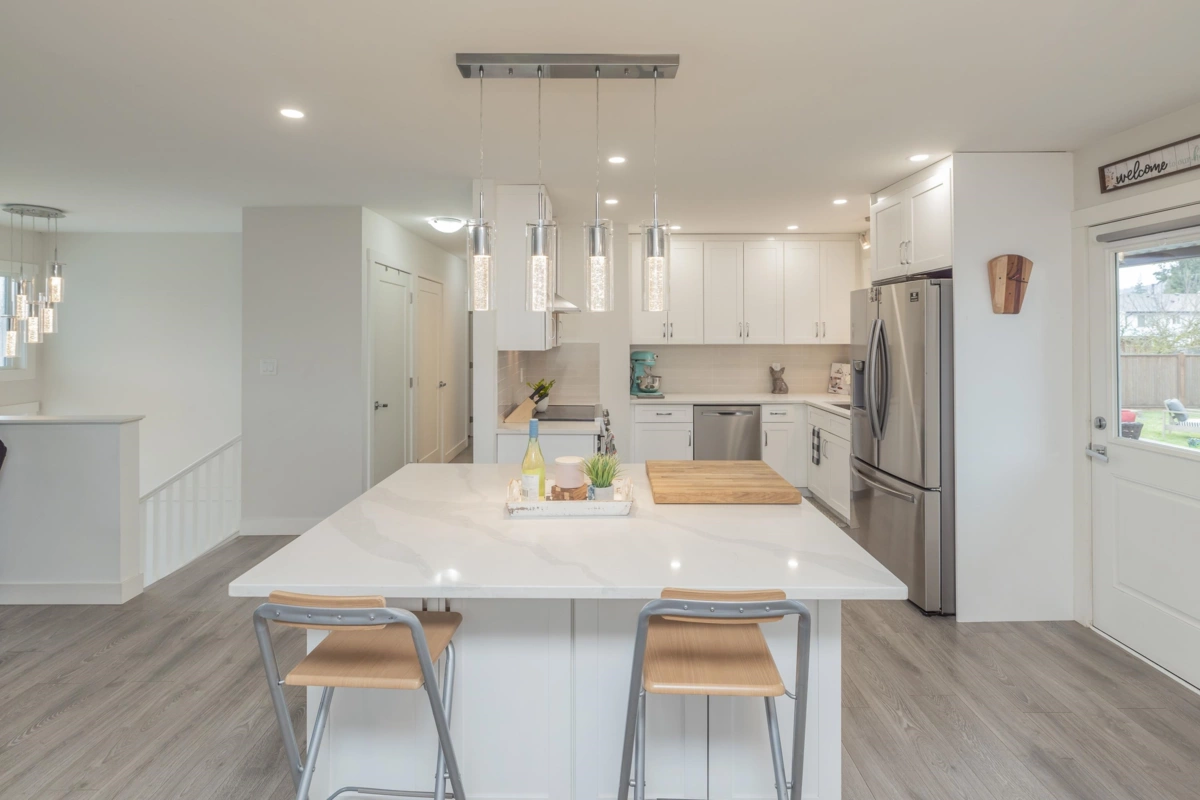 This could be your new beautifully updated, air-conditioned 6-bed, 3-bath home on an large 8,400 sqft lot featuring 2 gated driveways, RV parking, & a fully fenced yard—ideal for families, pets, & gardeners. The bright open-concept living space showcases a sleek linear fireplace & sun-filled solarium for year-round enjoyment. The designer kitchen offers quality fixtures, luxury finishes, & a large island perfect for entertaining. The spacious primary suite incl. a 4-piece ensuite & French doors opening to a covered deck w/ hot tub, extending your living space outdoors. The lower level features a 3-bed in-law suite, ideal for family or potential rental income. Conveniently located near schools, amenities & easy highway access, this home offers exceptional comfort, and lifestyle appeal.