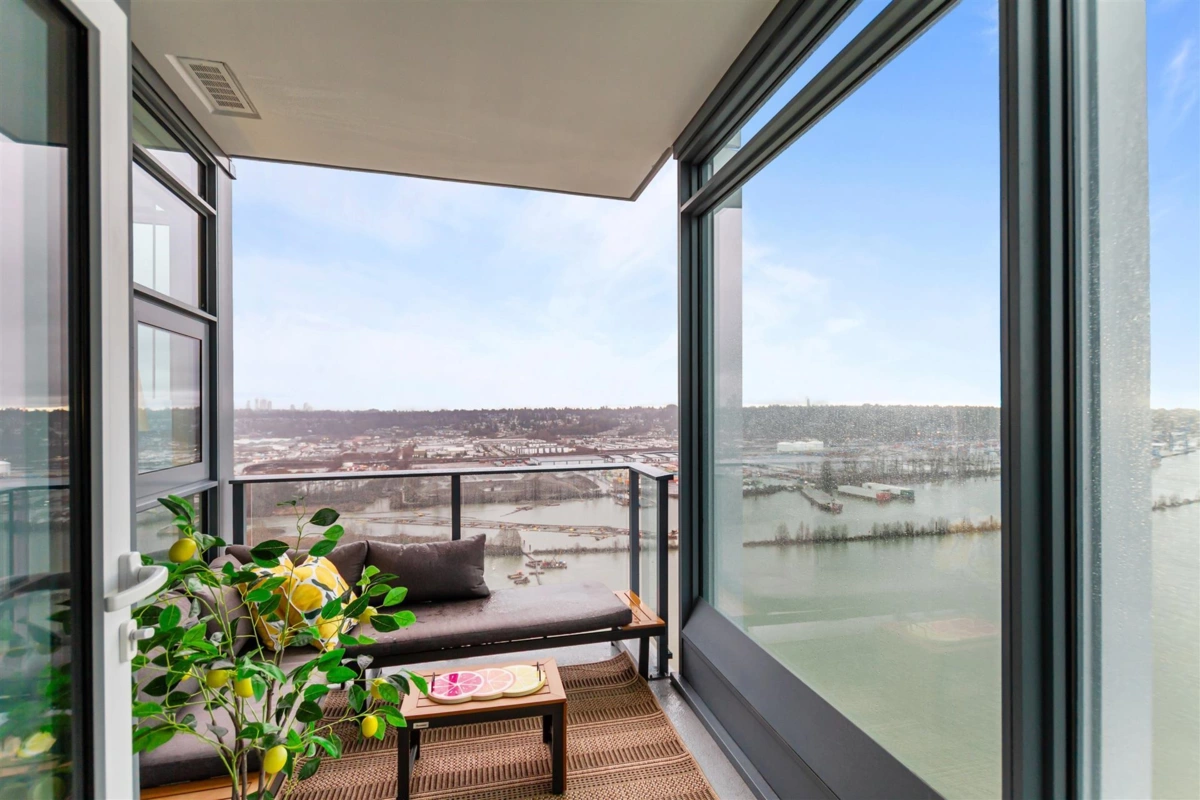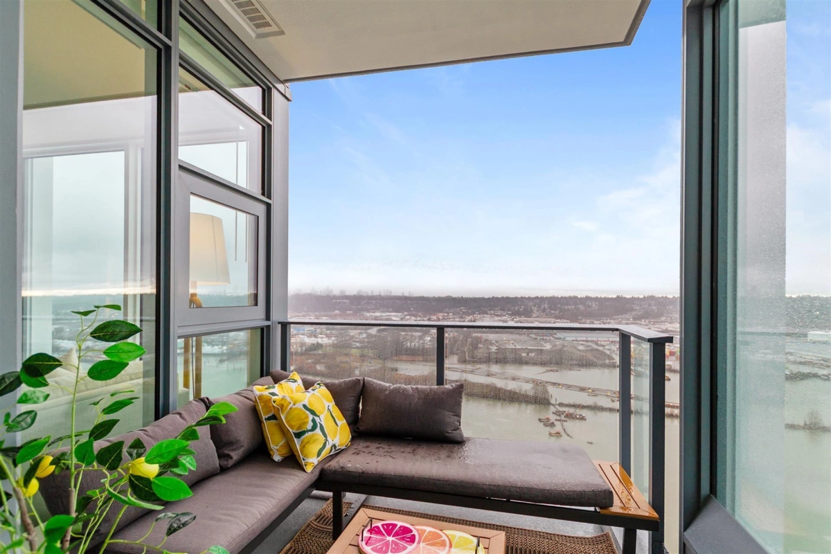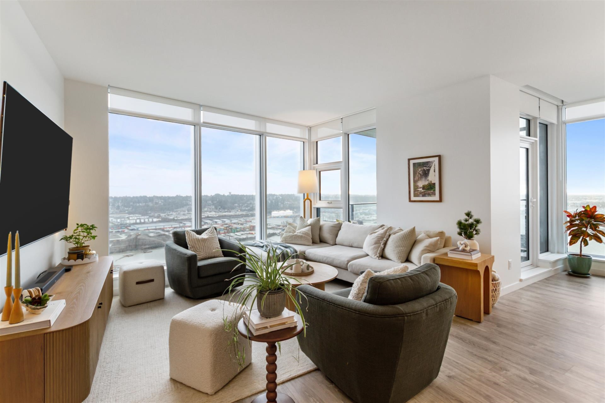 Welcome to BEST VALUE ($225+K BELOW PURCHASED PRICE) at Pier West—New Westminster's premier waterfront address by renowned developer Bosa.Perched high on the 32nd floor of this iconic West Tower, this exceptional residence delivers the ultimate in modern luxury living with forever-unobstructed views of the Fraser River and vibrant city skyline. Light-filled home featuring floor-to-ceiling windows that flood every room with natural light and showcase those breathtaking river vistas from morning coffee to evening sunsets. The open-concept layout is perfect for effortless entertaining — a sleek gourmet kitchen with premium appliances,gas cooking,solid-slab countertops,waterfall island,and integrated finishes flows seamlessly into the generous living and dining area.Open House Sat-Sunday 2-4.