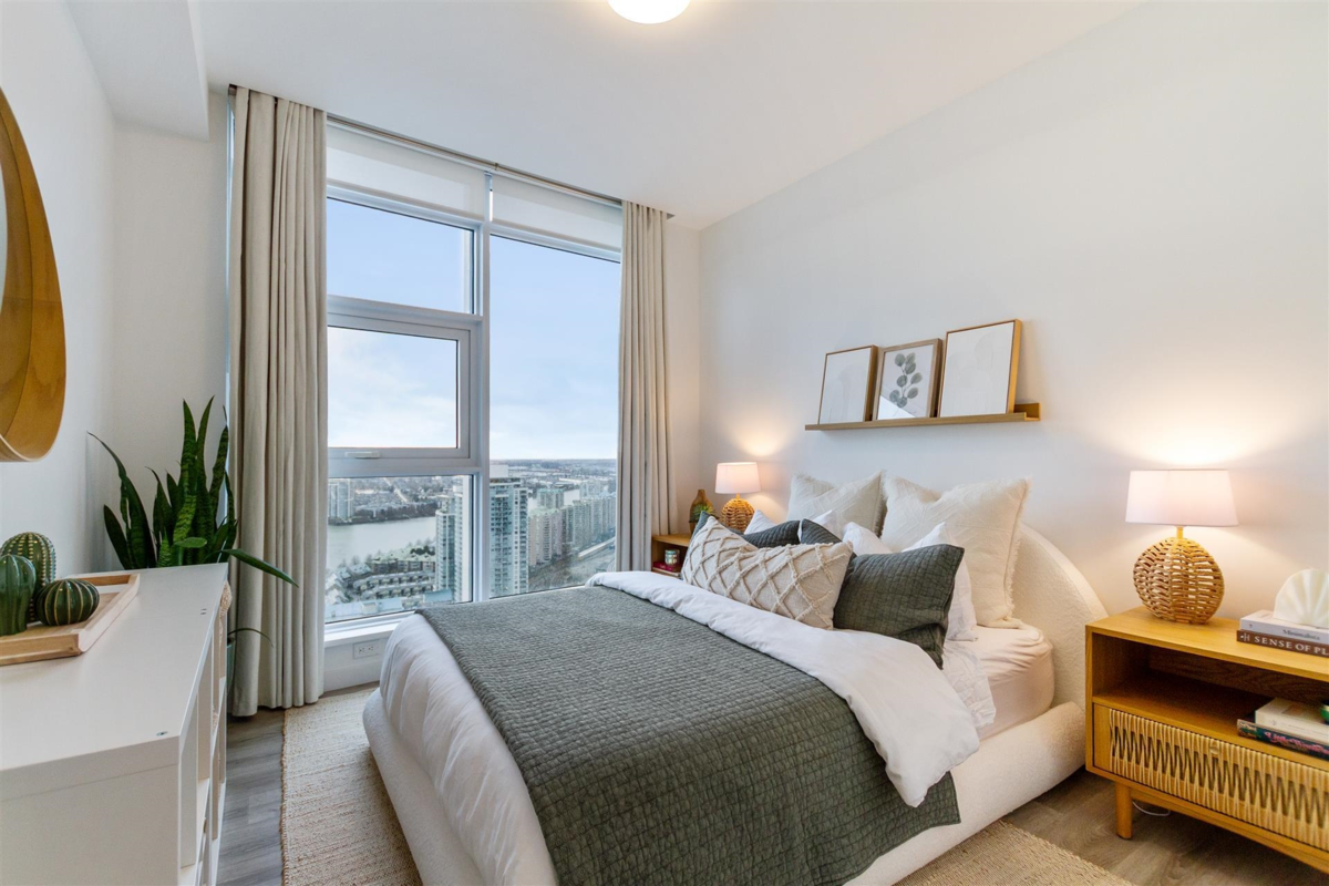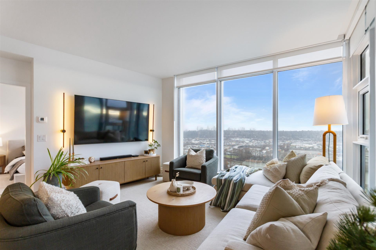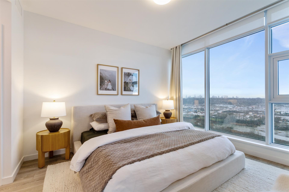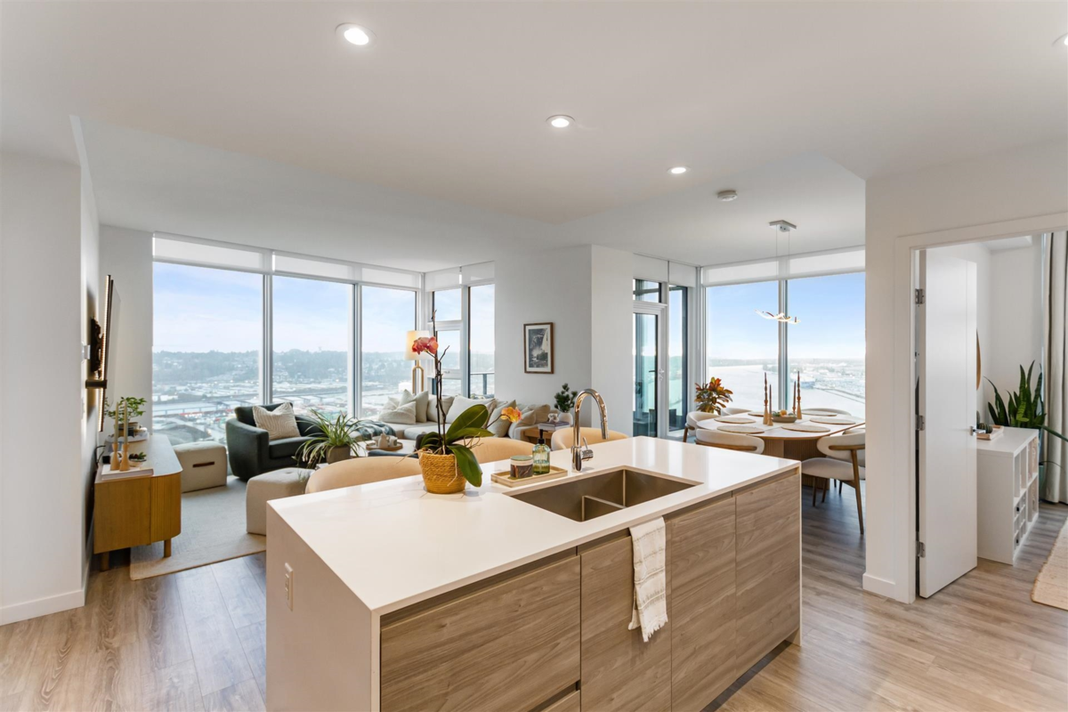 Welcome to BEST VALUE ($225+K BELOW PURCHASED PRICE) at Pier West—New Westminster's premier waterfront address by renowned developer Bosa.Perched high on the 32nd floor of this iconic West Tower, this exceptional residence delivers the ultimate in modern luxury living with forever-unobstructed views of the Fraser River and vibrant city skyline. Light-filled home featuring floor-to-ceiling windows that flood every room with natural light and showcase those breathtaking river vistas from morning coffee to evening sunsets. The open-concept layout is perfect for effortless entertaining — a sleek gourmet kitchen with premium appliances,gas cooking,solid-slab countertops,waterfall island,and integrated finishes flows seamlessly into the generous living and dining area.Open House Sat-Sunday 2-4.