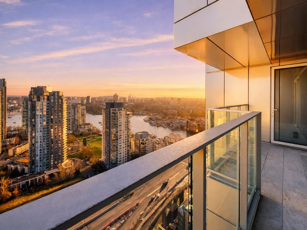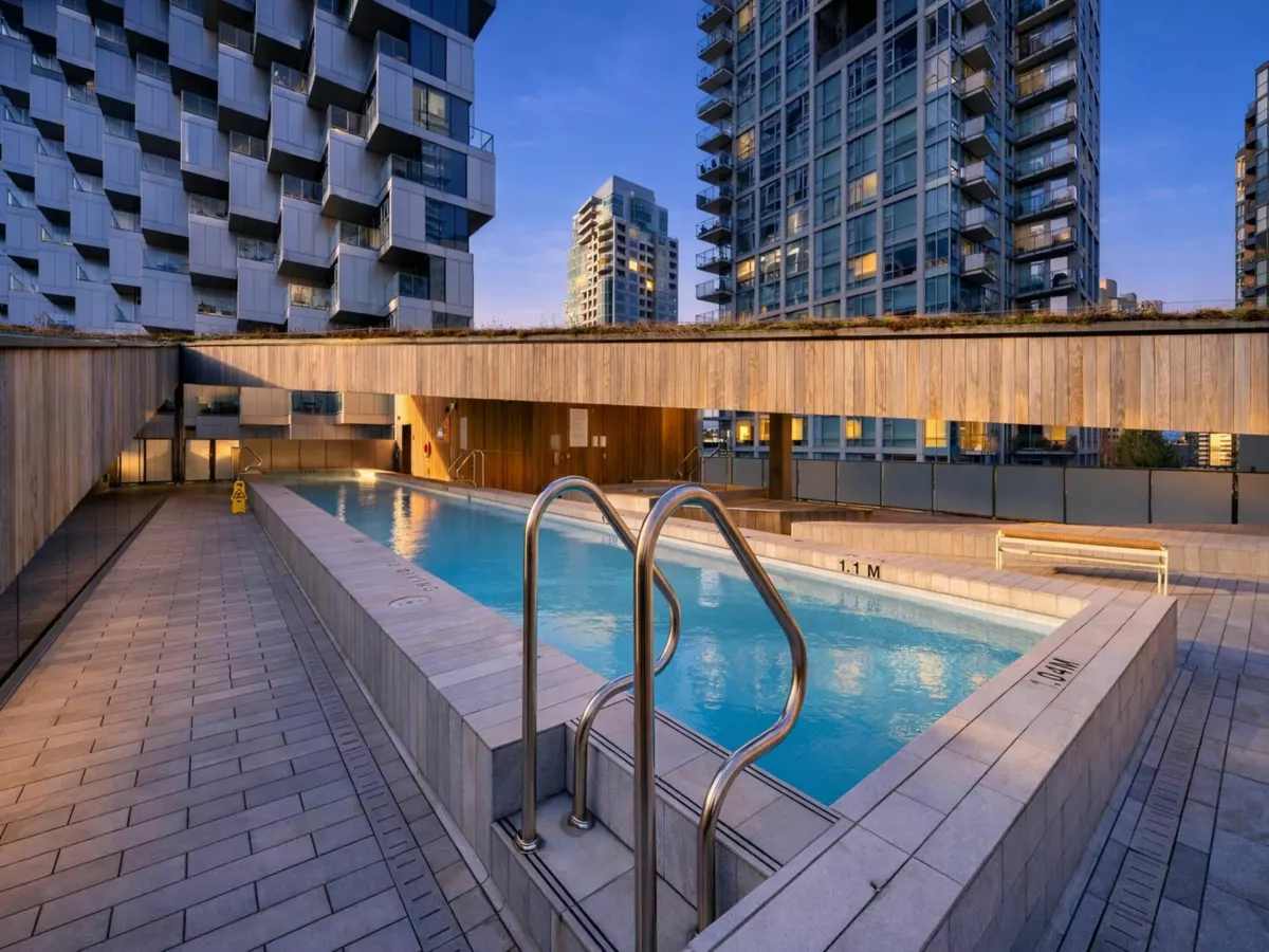 Own a sleek 1-bedroom, 557 sq ft luxury residence with the option to move in or assume $3,700/month fixed-term rental income. This world-class Westbank tower offers true resort living with heat/cool integration, 24hr concierge, heated pool & hot tub w/ exclusive access to House Concepts fitness. Positioned steps to the Seawall, this home captures unobstructed panoramic views of False Creek & Downtown Vancouver while featuring a rare wraparound balcony—enjoy waterfront executive-level living.The interior showcases a Boffi-designed Italian kitchen with integrated Miele appliances, stone countertops, & refined modern cabinetry. Spa-inspired bath offers a walk-in glass shower + a separate full-size soaker tub. CRF over $1.6 Million w/ warranty. 1 Parking (EV available) +Storage Locker.