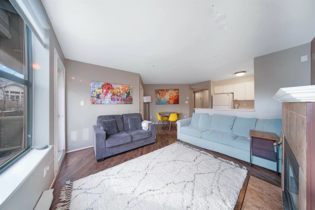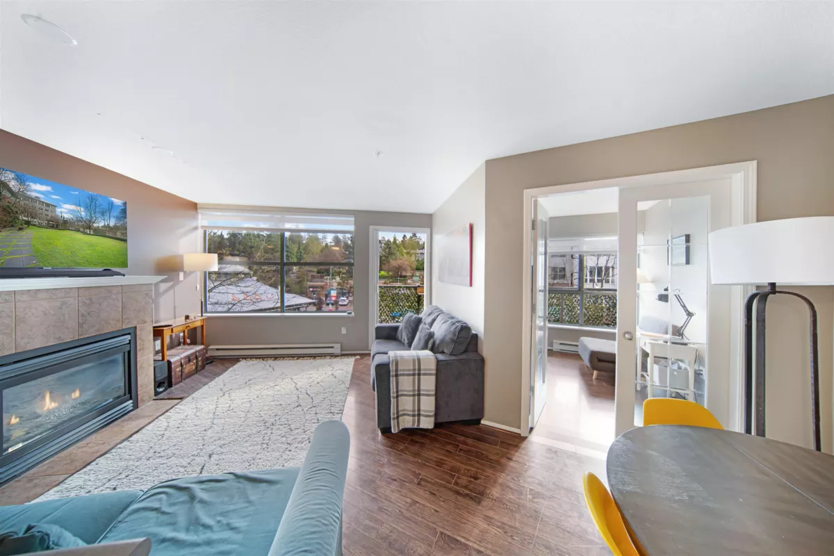 Doesn't remind you of Whistler Village?! This beautifully appointed one-bedroom plus den in the ever-popular Newport Village is a pleasure to show. Featuring a fantastic, functional floor plan and a balcony overlooking vibrant Market Square, this home offers an extra-large bedroom, a spacious den, and a cozy gas fireplace. French doors from both the living room and bedroom open onto the balcony, creating a bright and inviting indoor-outdoor feel. Complete with in-suite laundry, parking, and storage, everything you need is here. Enjoy the very best of Port Moody living, just steps from Buntzen Lake, Rocky Point, scenic hiking trails, shopping, restaurants, cafés. Also Sky Train,Daycare downstairs, Rec Centre, Library is a five minute walk * OPEN HOUSE: SAT/SUN , JAN 17/18, 2-4 PM