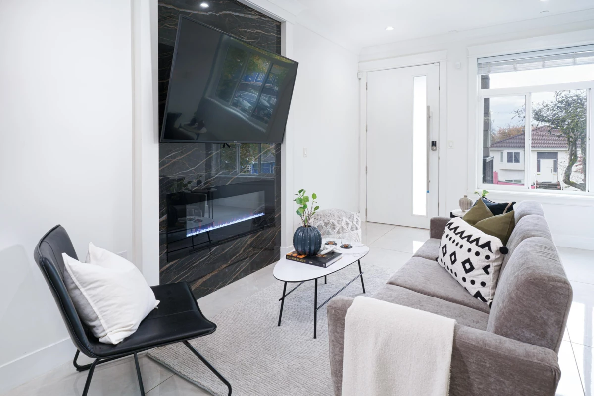 Welcome to this beautifully designed, 5-year-young side-by-side half duplex on a spacious 41x110 lot. Bright, contemporary interiors showcase 3 bedrooms and 3.5 bathrooms with thoughtful craftsmanship throughout. Enjoy comfort year-round with air conditioning, radiant floor heating, HRV, built-in vacuum, and security system. A fully legal studio suite with its own entrance and laundry offers excellent flexibility for extended family or supplemental income. Take in beautiful city and mountain views from the home, adding a sense of calm and connection to the surroundings. Located in a quiet, friendly neighborhood just minutes from shopping, transit, highways, and great schools. This is a rare opportunity to secure a home in a sought-after community. Bonus Detached Garage! Outstanding Value.