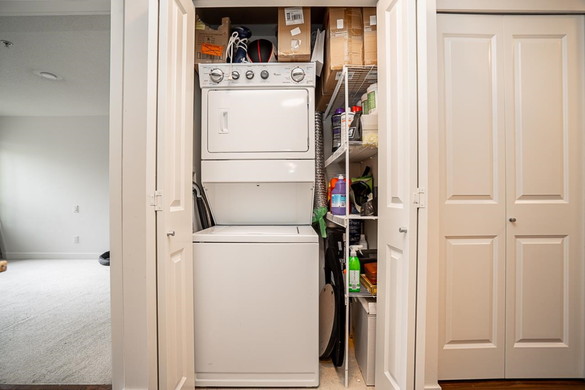 Discover this bright and spacious 1 bedroom + den condo in the heart of Walnut Grove. Offering over 700 sq ft of comfortable living, this well-laid-out home features laminate flooring throughout, a modern kitchen with granite countertops and stainless steel appliances, plus in-suite laundry tucked into its own closet. The Jack-and-Jill bathroom offers both convenience and flexibility, serving as a main bath and ensuite. Located in the secure and well-maintained Hawthorne building with fob and elevator access. Enjoy the unbeatable location—just a short walk to Carvolth Park & Ride, shops, restaurants, and more. With easy freeway access, this is a smart choice for commuters, first-time buyers, or investors alike.