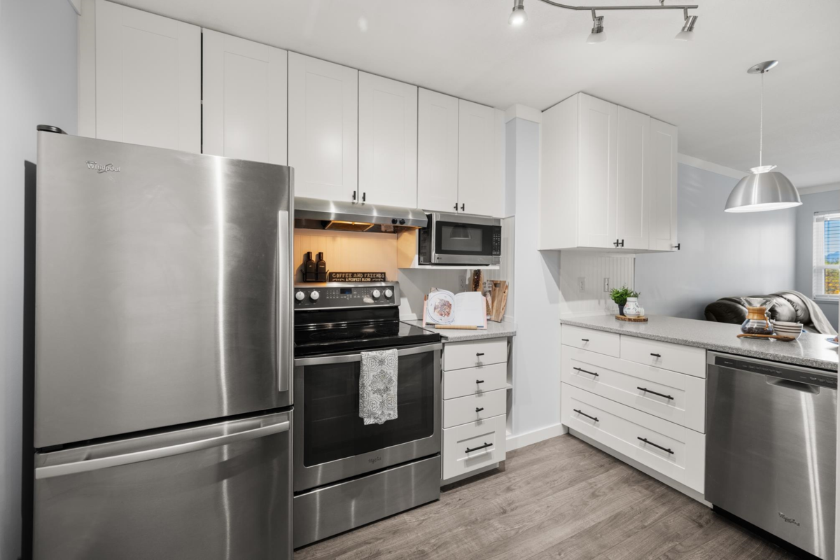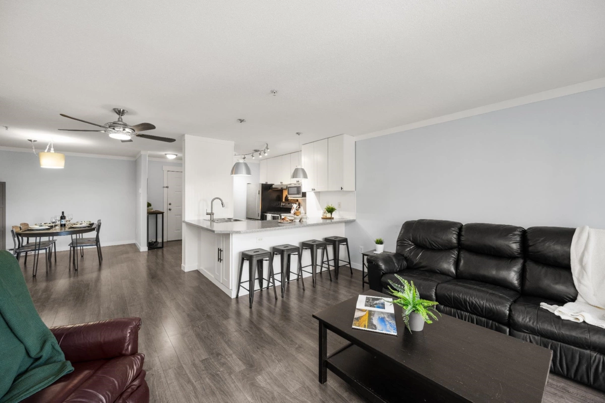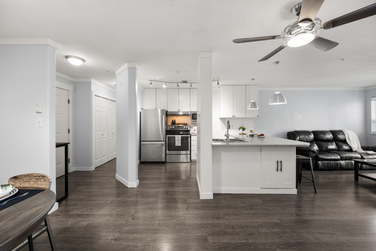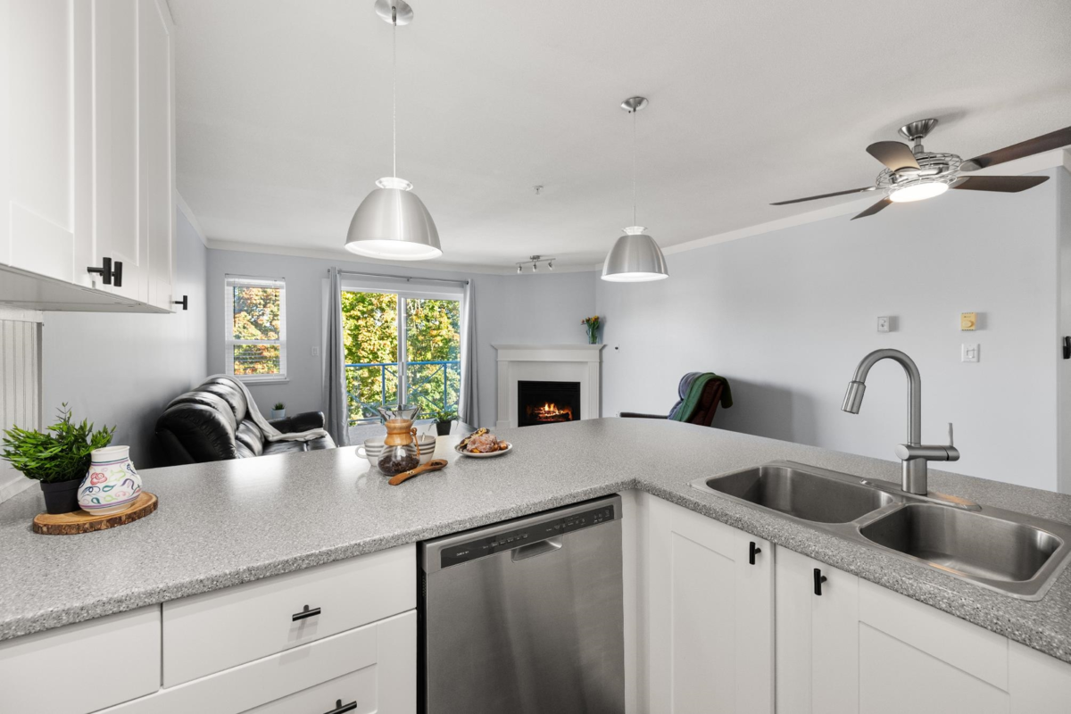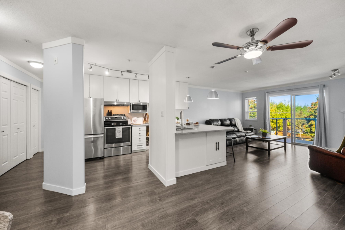 Top-floor living in the heart of Murrayville at Eaglecrest. This home features an open-concept layout with a centrally located kitchen that opens up to the main living areas, ideal for entertaining and everyday living. The living room is warm and inviting, highlighted by a gas fireplace and mountain views from the patio. A thoughtfully designed floor plan places the spacious bedrooms on opposite sides of the home, offering ideal privacy, while ample in-suite storage adds to the home’s functionality. Complete with 2 side-by-side parking and a storage locker. Within walking distance to WC Blair Rec Centre, Murrayville Square Shopping Centre, LMH, parks, schools, & all the amenities that make this one of Langley’s most desirable communities. A rare top-floor opportunity in Murrayville!