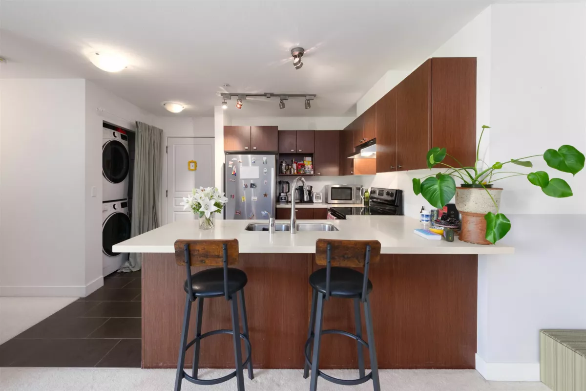 Discover this stunning 2-bedroom, 1-bathroom unit in the heart of Vancouver's vibrant central area. Located in the sought-after Century building on Fraser Street and E. 29th Ave, This beautifully maintained home offers a serene view of the inner courtyard. The spacious, light-filled living area seamlessly connects to a modern kitchen, perfect for entertaining. The bedrooms are generously sized, primary has wal in closet. Providing comfort and privacy. Enjoy the convenience of in-suite laundry, ample storage, secured parking, and an additional locker. With a robust $1.4M contingency fund, this building ensures peace of mind for its residents. This unit is a perfect blend of style and functionality, ideal for those seeking a dynamic urban lifestyle.