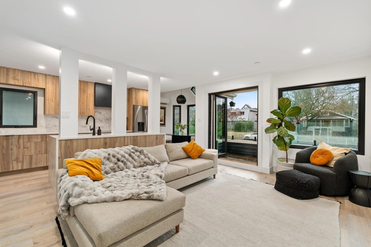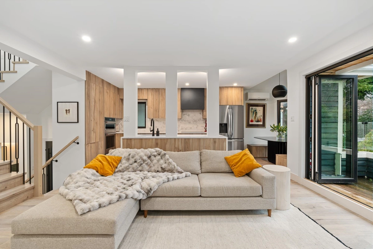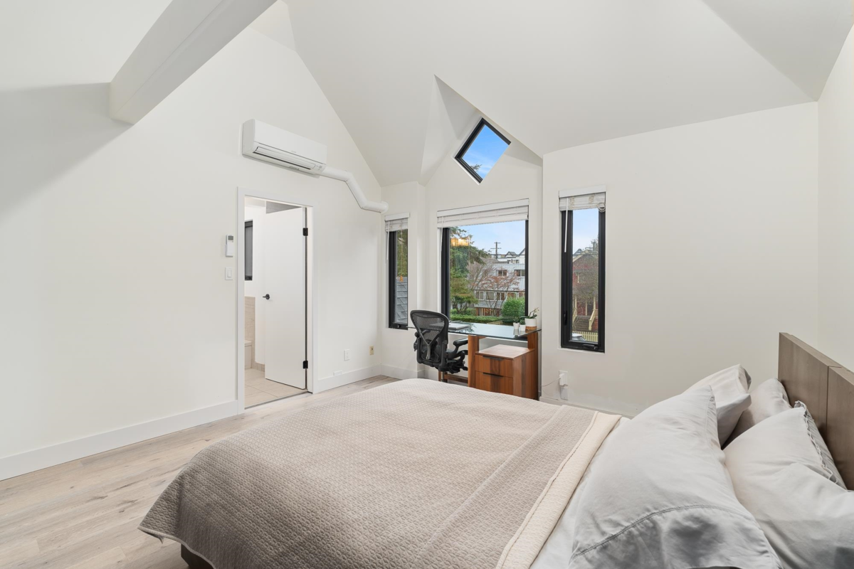 BEAUTIFUL KITS FRONT 1/2 DUPLEX-Located in the heart of Kitsilano, this 1/2 duplex offers 3 bedrooms & 2.5 bathrooms w/ extensive renovations throughout. Bright & open w/ 11’ vaulted ceilings, skylights, bay window & quiet, south facing private patio. Main level has been reimagined w/ luxury vinyl plank flooring, quartz countertops, new appliances, electric fireplace, redesigned entry, staircase & powder room, bifold sliding door for seamless indoor-outdoor living. Fully re-plumbed & upgraded w/ new windows, heat pump climate control in all bedrooms & living area, new roof, exterior paint & glass deck railing. Primary bed enjoys mountain views. Attached garage with epoxy flooring & ample storage.Walk to Jericho & Spanish Banks, McBride Park, shops, transit & schools. OPEN TUES,FEB 3, 5-7PM