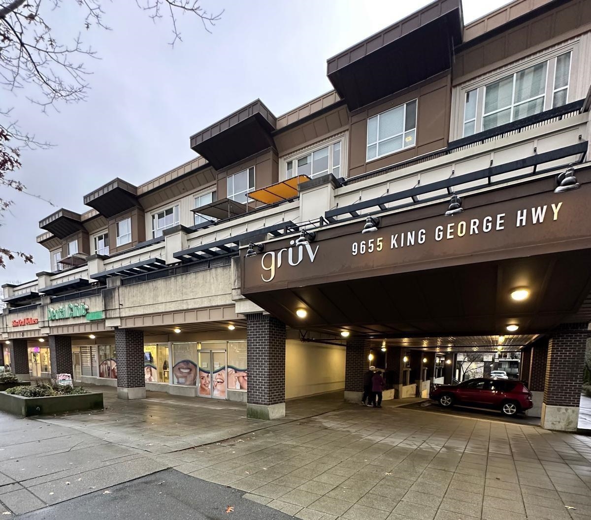 Welcome to the Gruv! This spacious 2 bedroom plus den unit features open concept layout, and over 973 sqft of living space. Bright unit, with stainless steel appliances, granite counter tops, laminate floors, and extra large outdoor balcony. Located just steps to Surrey Memorial Hospital and opposite of UBC's future Surrey campus. This home offers unbeatable convenience. With a bus stop right across the street and the SkyTrain just a 10-minute walk away, commuting is a breeze. Residents enjoy access to fitness centre, private lounge available for bookings, and a dedicated building caretaker.
