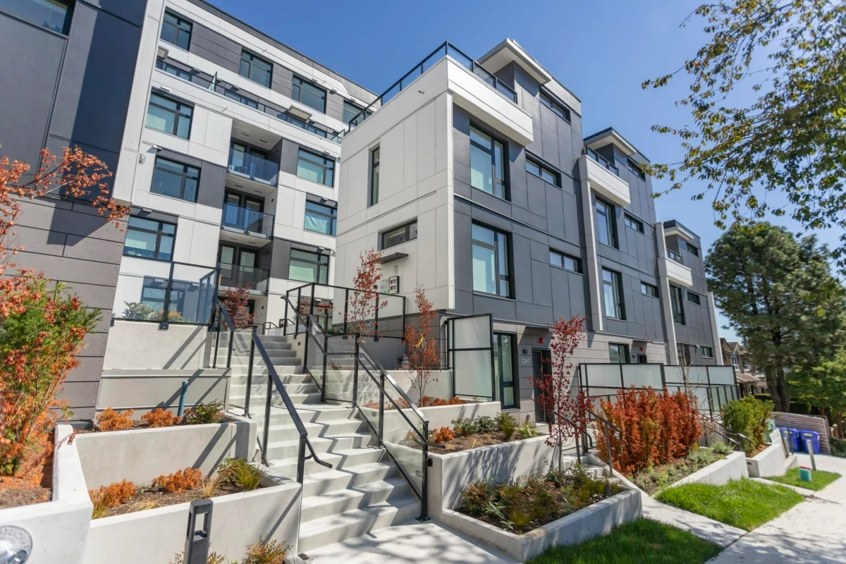 MOVE-IN READY | CLIVE at Collingwood is East Vancouver’s best value. One of the final opportunities to own at Clive, this 4-level concrete townhome in Joyce-Collingwood offers a private rooftop deck, direct access to secured parking, and an oversized private storage vault—rare conveniences in the neighbourhood. Superior finishes include a gas range, air conditioning, smart home technology you can control from your phone, and the world’s most powerful air-filtration system for peace of mind. All paired with sleek interiors and functional layouts, just steps to the SkyTrain and surrounded by single-family homes. With the option to purchase a second parking stall, secure your home today with only 5% down.