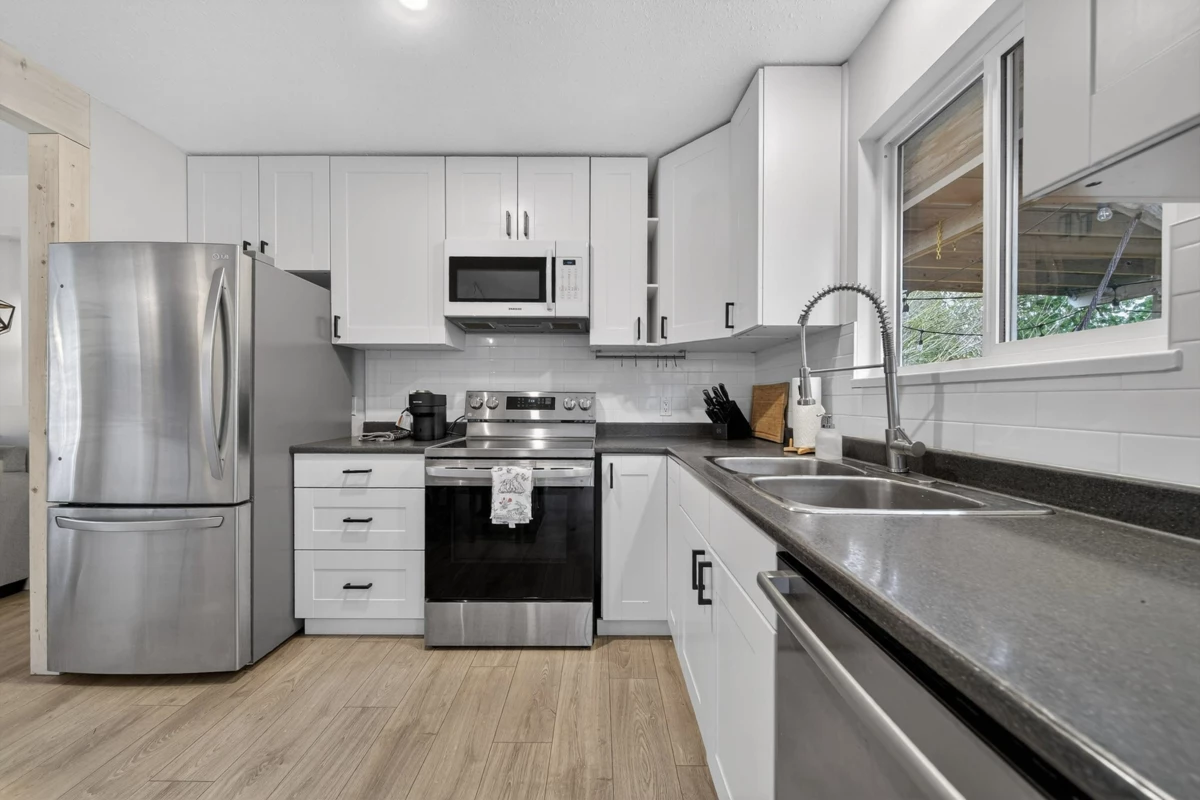 Welcome to this bright and updated 4-bedroom, 2-bathroom basement-entry home on a spacious corner lot in Mission. The main floor offers three bedrooms, one bathroom, modern flooring throughout, a light-filled open-concept living and dining area, and an updated kitchen. The lower level features a 1 bed 1-bath in-law suite with shared laundry—ideal for extended family, mortgage helper, or just extra living space! Enjoy ample parking, a fully fenced backyard, and side yard access for RV parking or recreational toys. Conveniently located near schools, shopping, dining, recreation, with quick access to Highway 7 and Highway 11 for easy commuting.