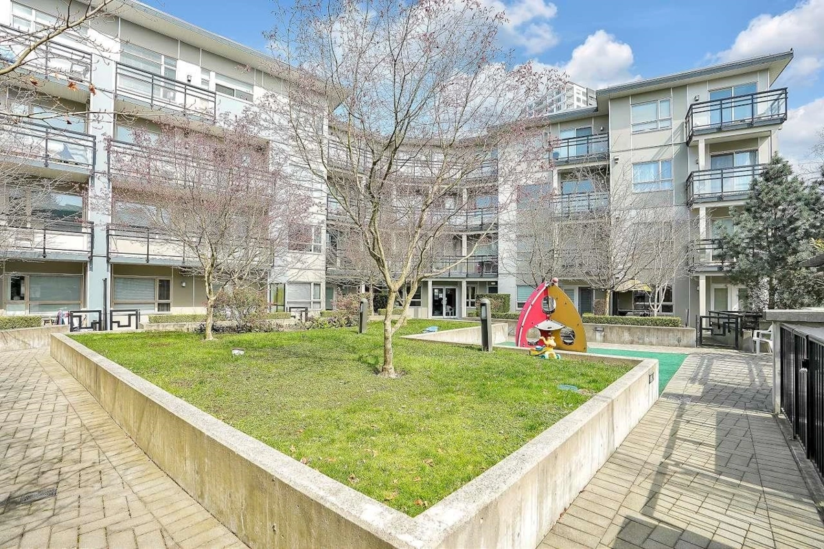 End Unit Condo – 2 Bedrooms, 2 Bathrooms. This bright and spacious end unit offers a functional layout with 9’ ceilings and a private patio. The contemporary kitchen features granite countertops, stainless steel appliances, and stylish cabinetry, complemented by luxurious bathrooms. Enjoy the convenience of one secured underground parking stall and a storage locker, plus access to bike storage. Building Amenities: Residents have access to a full gym, party lounge, landscaped garden area, and a children’s playground. Prime Central Location: Located directly across from an elementary school, and within walking distance to a high school, SFU Surrey campus, Surrey Central Mall, SkyTrain station, and Holland Park.