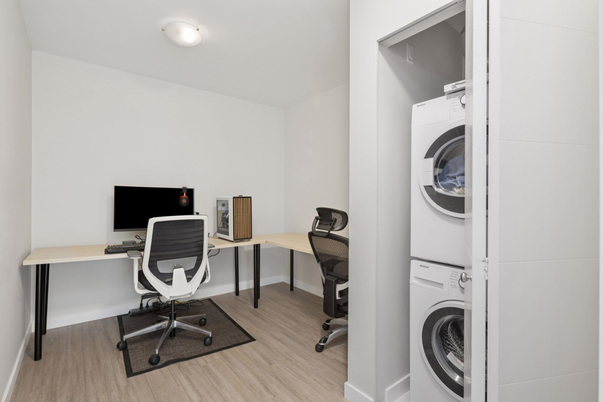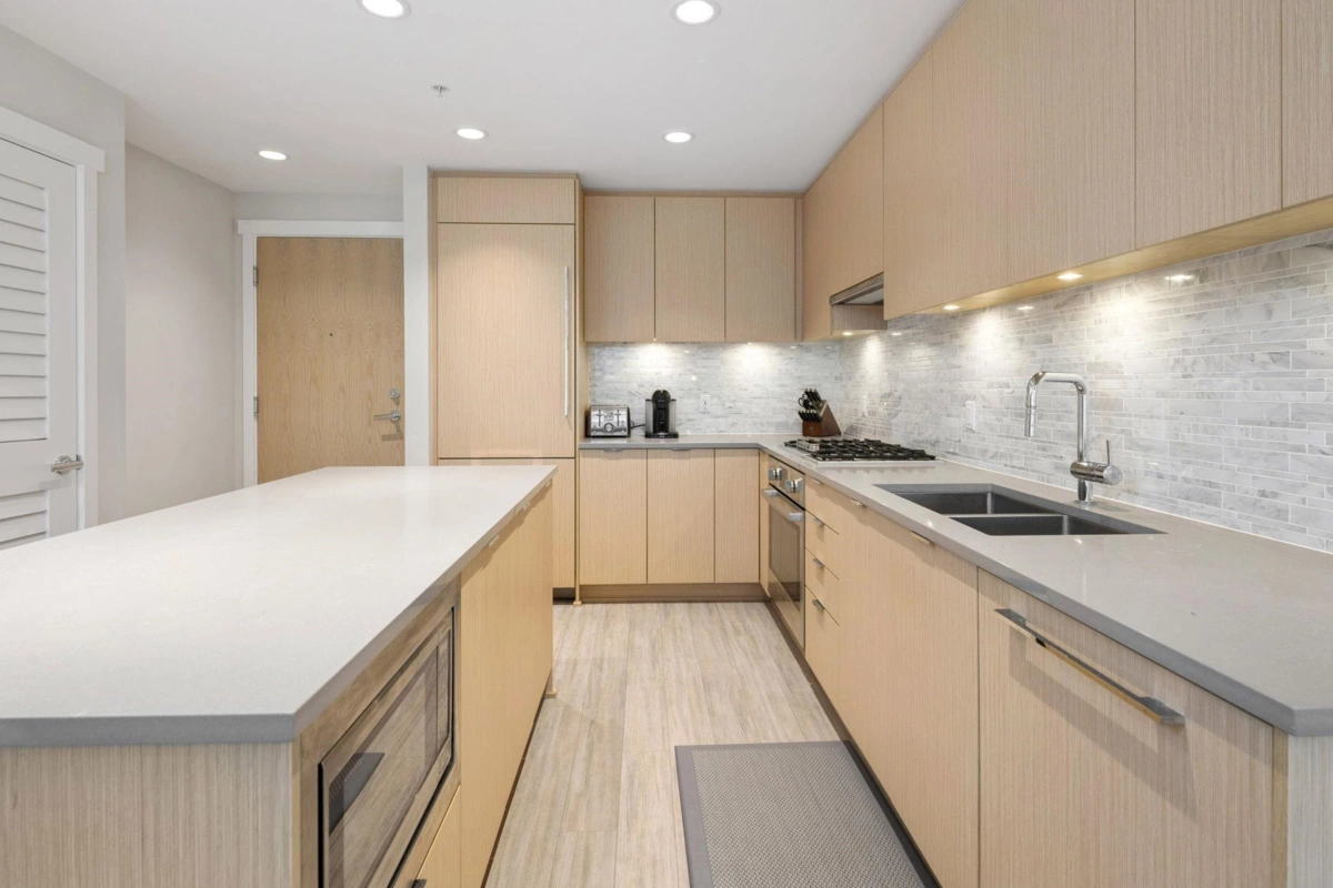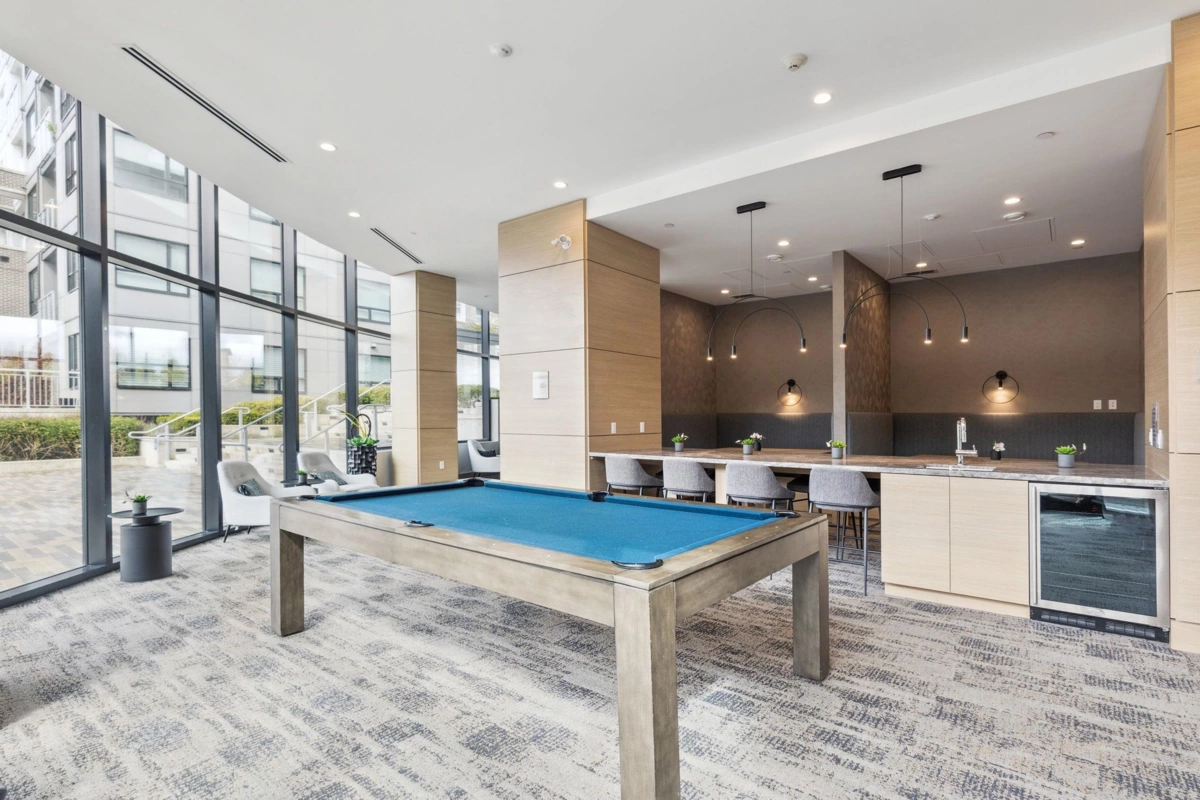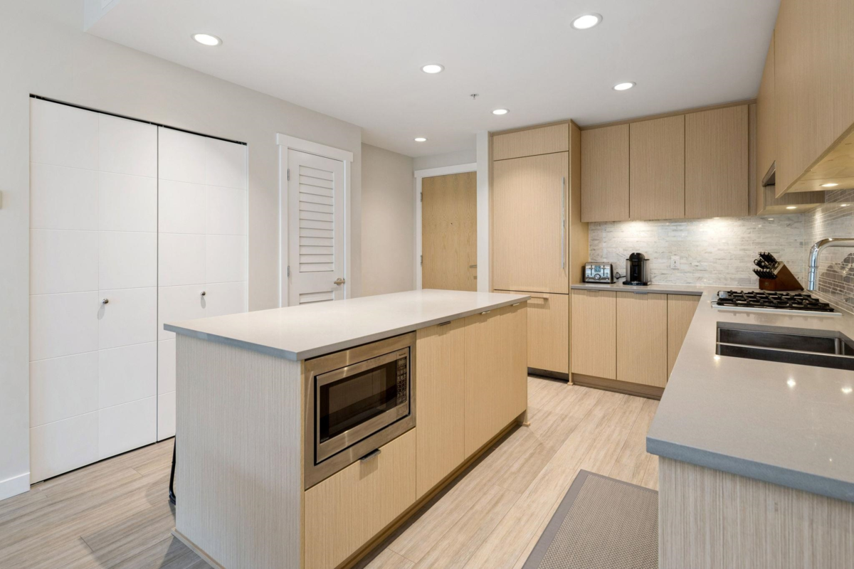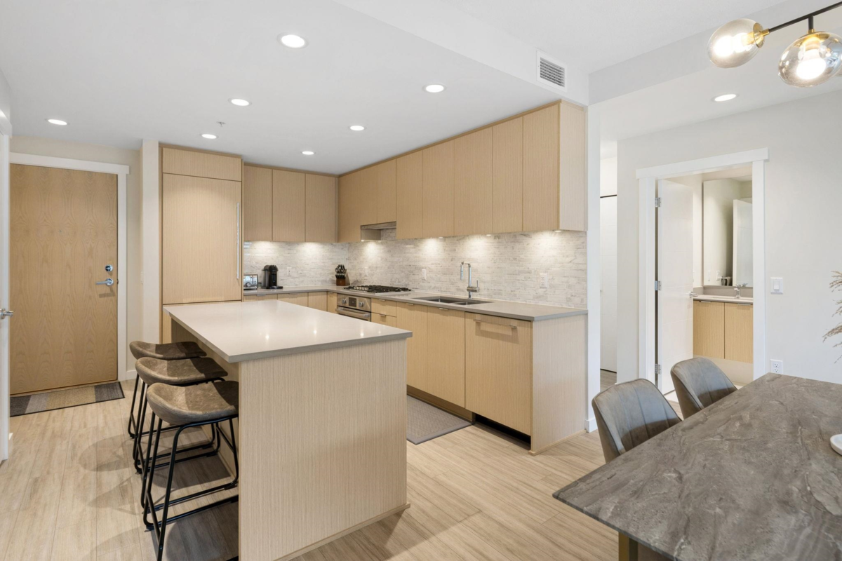 BERKELEY HOUSE by reputable developer POLYGON! This 981 SF 2 bed + DEN AIR-CONDITIONED home has been meticulously maintained by ORIGINAL OWNERS & never tenanted. PERFECT floorplan w/ high ceiling, bedrooms on opposite sides & 0 WASTED SPACE! Open-concept chef's kitchen features large island, BOSCH appliances, 5-burner GAS range, full size fridge & plenty of cabinetry/countertop space for all your cooking needs. Primary bed can fit a KING bed & spa-like ensuite w/ DOUBLE sinks. MASSIVE DEN perfect for home office/play area or additional storage space. FULLY COVERED balcony w/ quiet outlook perfect for relaxation & BBQs! 1 PARKING & OPTION TO BUY MORE. Amenities: Pool table, lounge, gym, ping pong, music room & more. STEPS to transit, skytrain, schools, & the best retail/dining in Richmond!