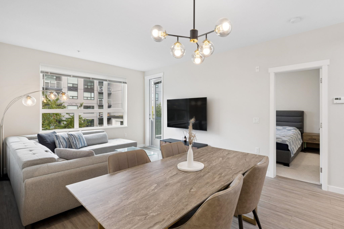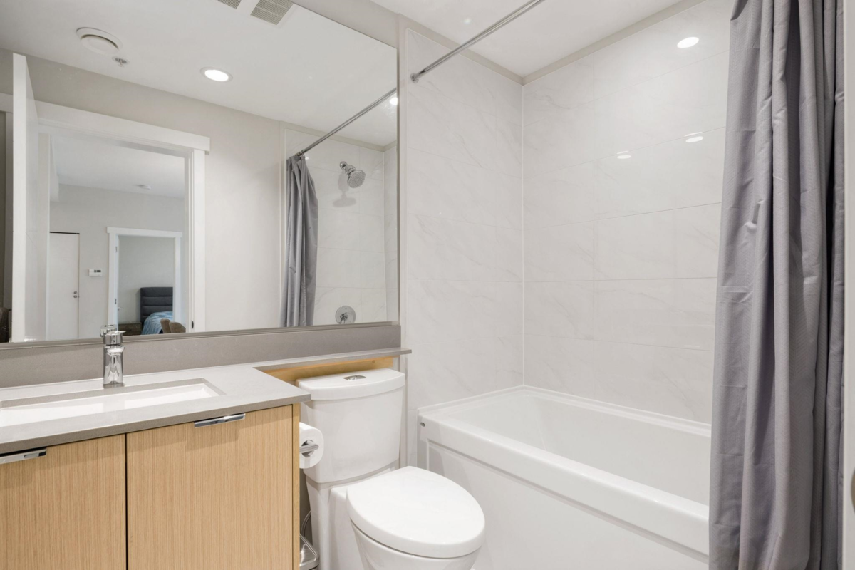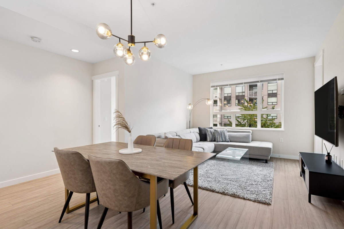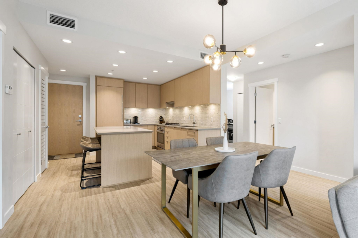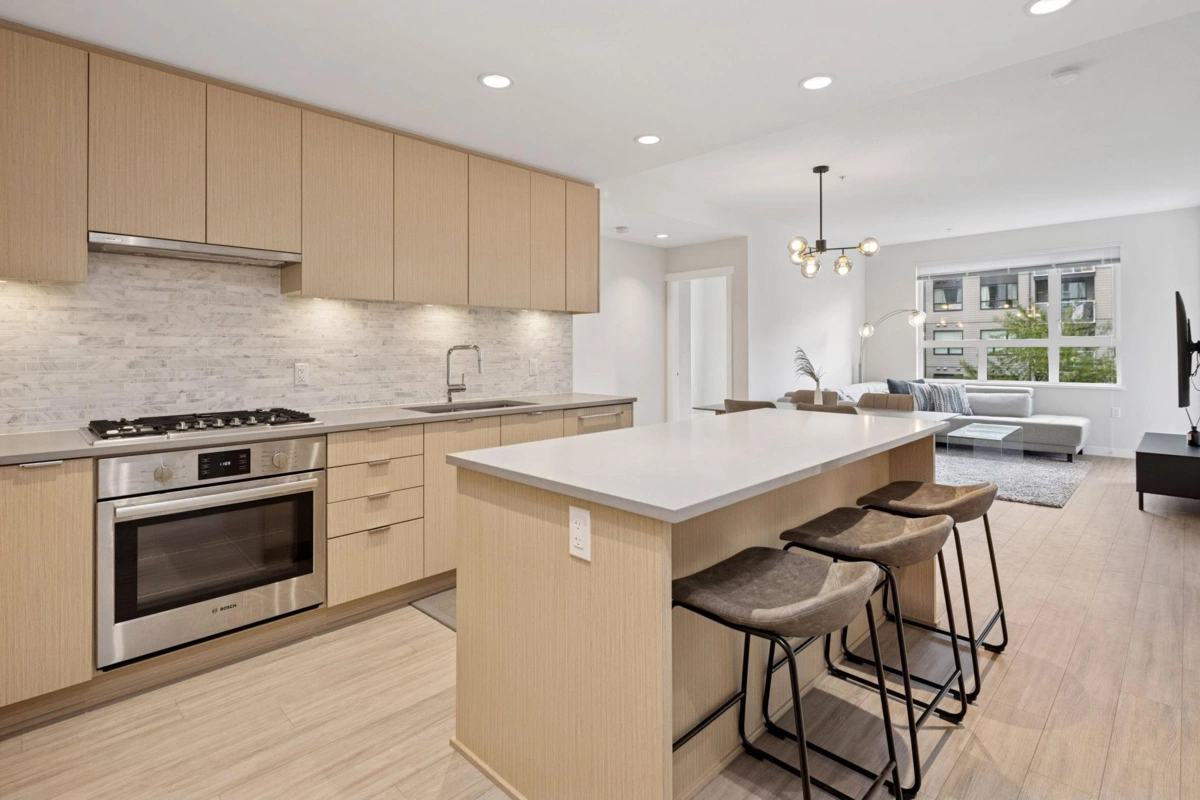 BERKELEY HOUSE by reputable developer POLYGON! This 981 SF 2 bed + DEN AIR-CONDITIONED home has been meticulously maintained by ORIGINAL OWNERS & never tenanted. PERFECT floorplan w/ high ceiling, bedrooms on opposite sides & 0 WASTED SPACE! Open-concept chef's kitchen features large island, BOSCH appliances, 5-burner GAS range, full size fridge & plenty of cabinetry/countertop space for all your cooking needs. Primary bed can fit a KING bed & spa-like ensuite w/ DOUBLE sinks. MASSIVE DEN perfect for home office/play area or additional storage space. FULLY COVERED balcony w/ quiet outlook perfect for relaxation & BBQs! 1 PARKING & OPTION TO BUY MORE. Amenities: Pool table, lounge, gym, ping pong, music room & more. STEPS to transit, skytrain, schools, & the best retail/dining in Richmond!
