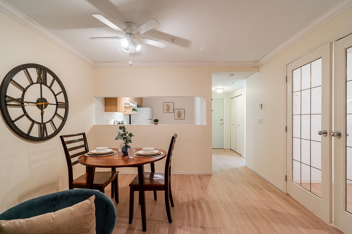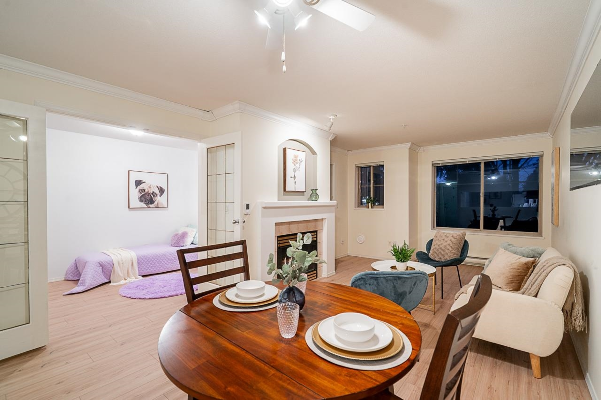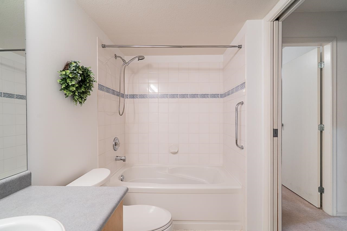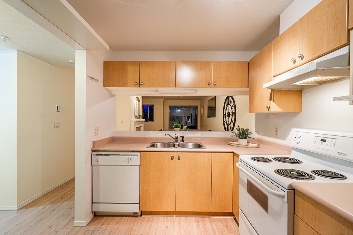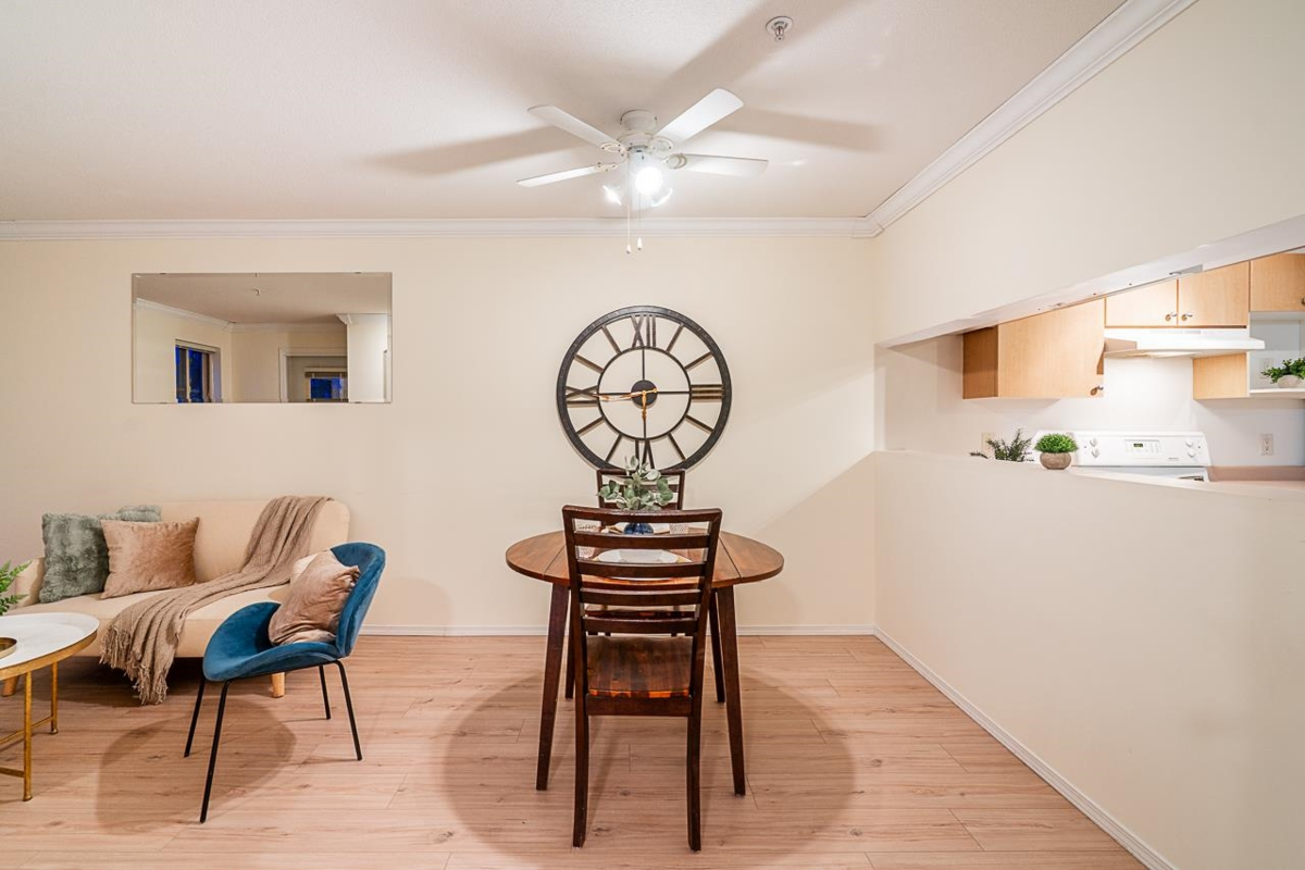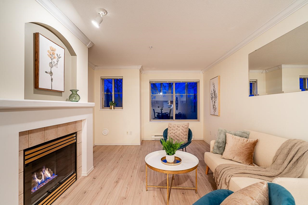 GREENBELT LOCATION. Tucked away in building #3, this condo is located in a peaceful, quiet setting backing onto a lush GREENBELT, perfect for those who value privacy and calm. Enjoy new laminate flooring throughout, a cozy gas fireplace, and a covered balcony ideal for morning coffee or evening downtime. The flexible den can easily function as a second bedroom with the addition of a closet or armoire. Tons of open parking available. Walkable to the new Aldergrove Town Centre. Quick completion dates welcome. STORAGE UNIT IS ON THE SAME FLOOR right across the hall. Great for first time purchasers, Downsizers or investors. Come take a look!