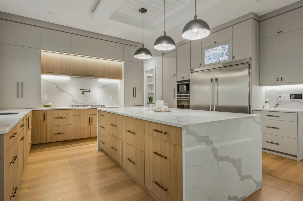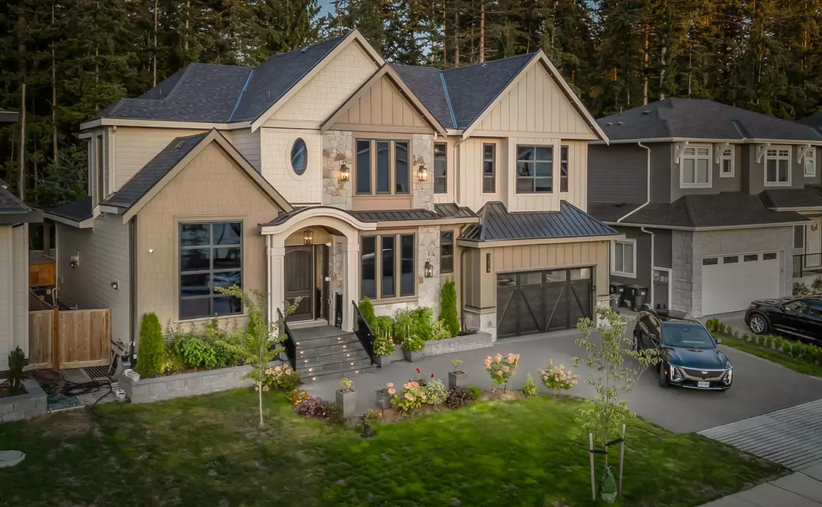 This captivating craftsman-style CUSTOM HOME is a true showpiece. Striking CURB APPEAL, meticulously crafted exterior and 6,300-sf+ of thoughtfully curated interior living. Inside, experience designer features such as a hidden powder room, 3-way fireplace and glass-enclosed den with VAULTED CEILINGS. The transitional interior is defined by soaring 20-ft ceilings, radiant heating, HIGH-END MILLWORK and finishings throughout. The modern kitchen is equipped with built-in F+P appliances incl. beverage maker, gas cooking, designer hardware, WALK-IN PANTRY and a secondary PREP KITCHEN. The main floor layout includes a second living area lounge, a mudroom and a fully ensuited bedroom suite. Enjoy a PRIVATE TREED YARD and expansive covered deck in beautiful Brookswood.