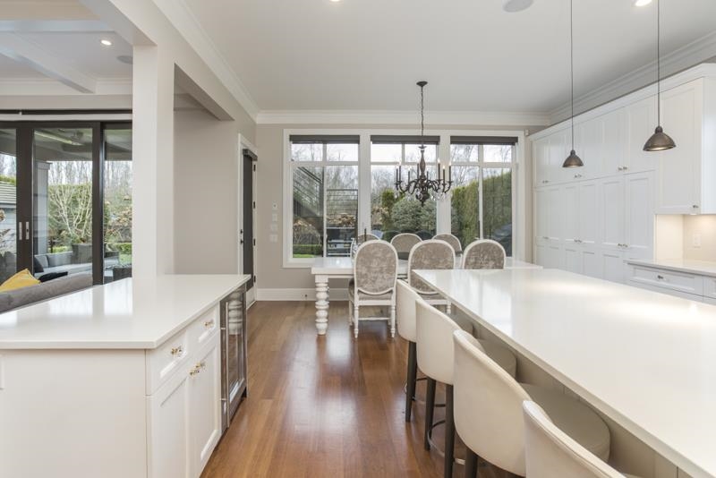 BACKING DIRECTLY ONTO THE TERRA NOVA NATURE RESERVE, on one of the largest lots in the neighbourhood, IMPRESSIVE 5 bdrm, 4.5 bath home shows LIKE NEW with quality updates and designer touches by renowned builder R.E. Siperko & ONE BY DESIGN! Modern floorplan flows effortlessly and allows multi-generational living. GREAT ROOM CONCEPT: white kitchen w/high end appliances, double QUARTZ island, walk-in pantry (potential wok kitchen), dining area opens to the cozy yet elegant family room with gas f/p, built-ins, bevelled mirrors all reflecting the stunning backyard through ECLIPSE SLIDING DOORS! West-facing backyard w/covered seating area, hot tub & shed. Primary bdrm w/luxurious ensuite. Over sized garage. The best school catchment. YOUR DREAM HOME!