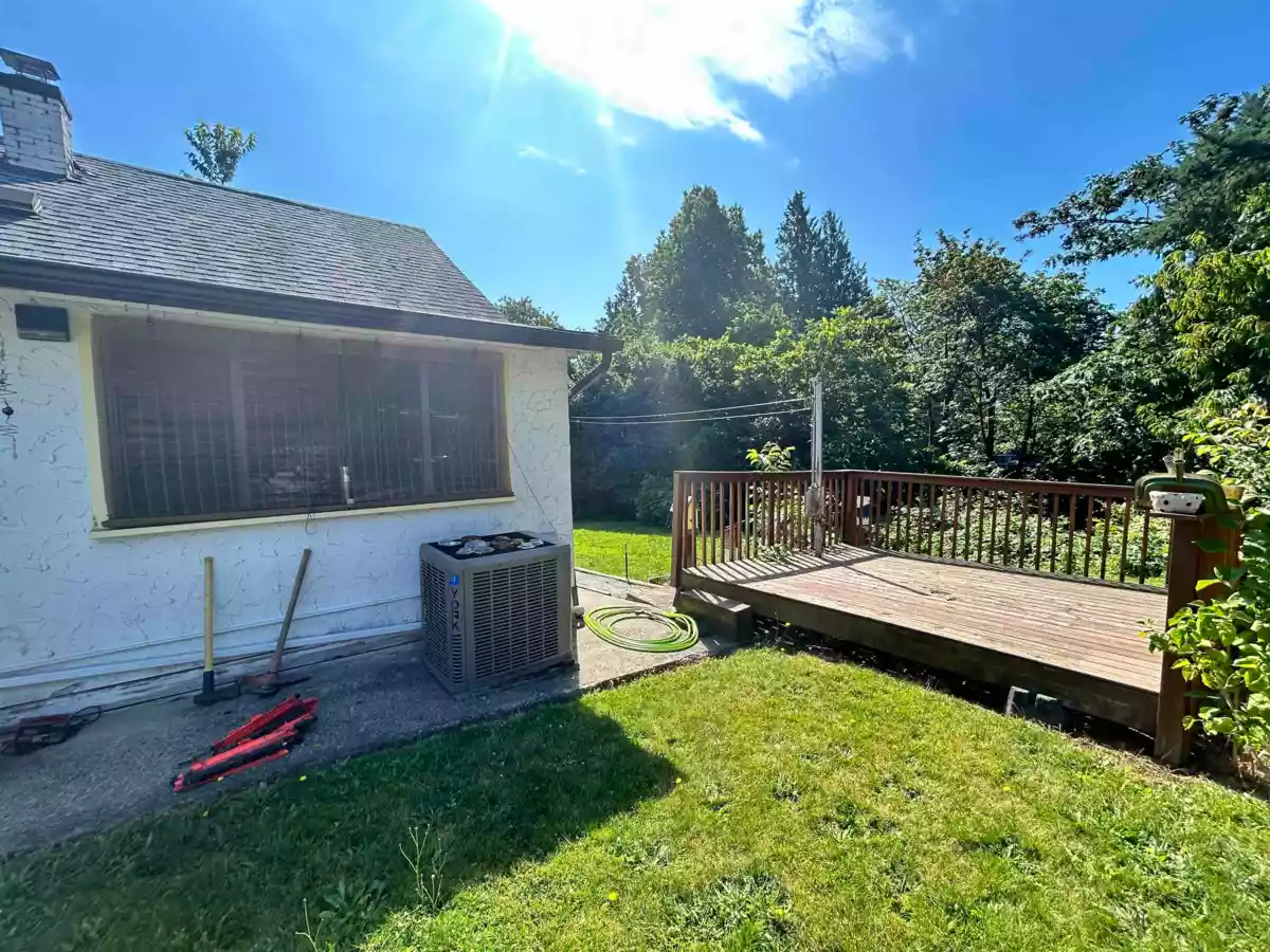 Charming, warm & cozy 2 bedroom & 1 bathroom detached rancher style home on a double lot. Fenced front yard with access to carport and large sunny south facing back yard that backs onto peaceful Horne Creek. Excellent property for young family or down sizing or moving into retirement. It features a new heat pump-perfect for year-round comfort. Enjoy morning coffee to the sound of nature, with walking trails, parks, leisure centre and schools just steps away. Located minutes from downtown Mission, the West Coast Express, and local shops, this home combines convenience with outdoor lifestyle at an unbeatable value.