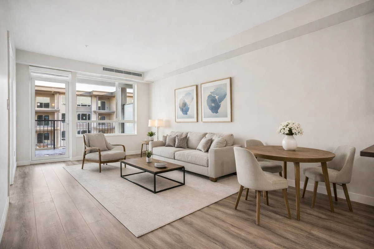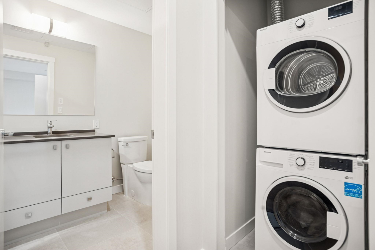 HAMILTON VILLAGE by reputable developer ORIS! Brand new 660 SF 1 BED + DEN w/ 9' CEILINGS, laminate flooring throughout and AC included — modern comfort meets open, airy living. Open-concept kitchen w/ gas stove & ample cabinetry/counter space for all your cooking needs. Bright living area flows to a large fully covered balcony w/ gas hook-up, ideal for BBQs, entertaining or relaxation. Spacious bedroom w/ spa-like ensuite. Den perfect for home office/flex space. 1 EV PARKING & LOCKER. PRIME LOCATION: STEPS to Hamilton Community Centre, Richmond, Van, Bby, New West, Surrey & more! Easy access to transit, SkyTrain, HWY 91, new Costco Business Centre, Queensborough retail & dining, parks, schools + everyday amenities. Exceptional opportunity in a vibrant, connected community!