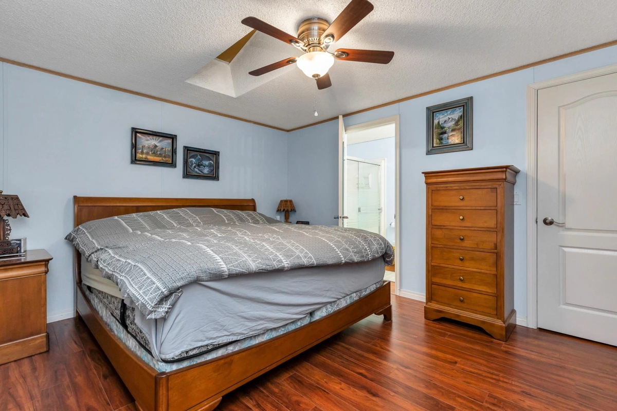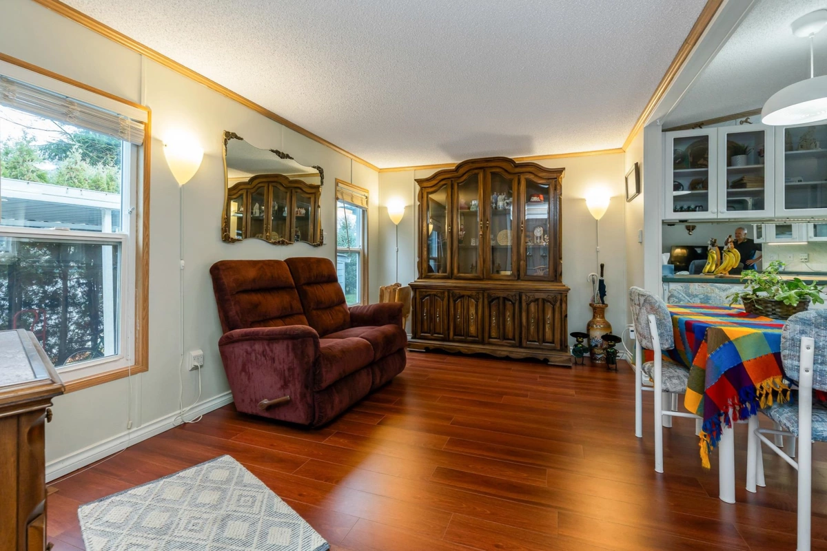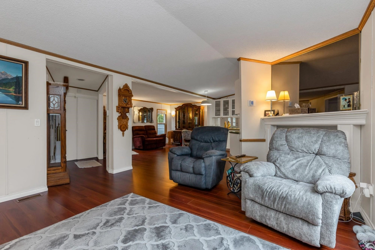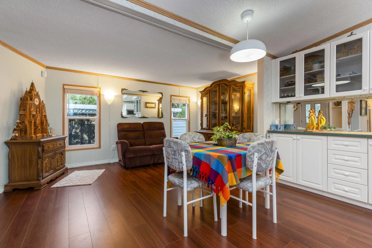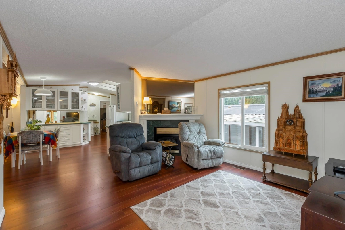 Fantastic home with all the necessities on one level! This spacious home offers over 1,200 sq ft of thoughtfully designed living space with 2 bedrooms and 2 bathrooms. Enjoy the convenience of two covered decks, a relaxing hot tub, air conditioning, and a new hot water tank. The home features a full-size washer and dryer, great kitchen for the cook in the family, built-in storage, and three additional storage sheds outside. Open-concept living area that’s perfect for everyday living and entertaining. The yard is amazing and the location in the park is like no other. You'll have to come and have a look for yourself. All of this makes this the perfect place to call home! Agult oriented 55+ plus age restriction.
